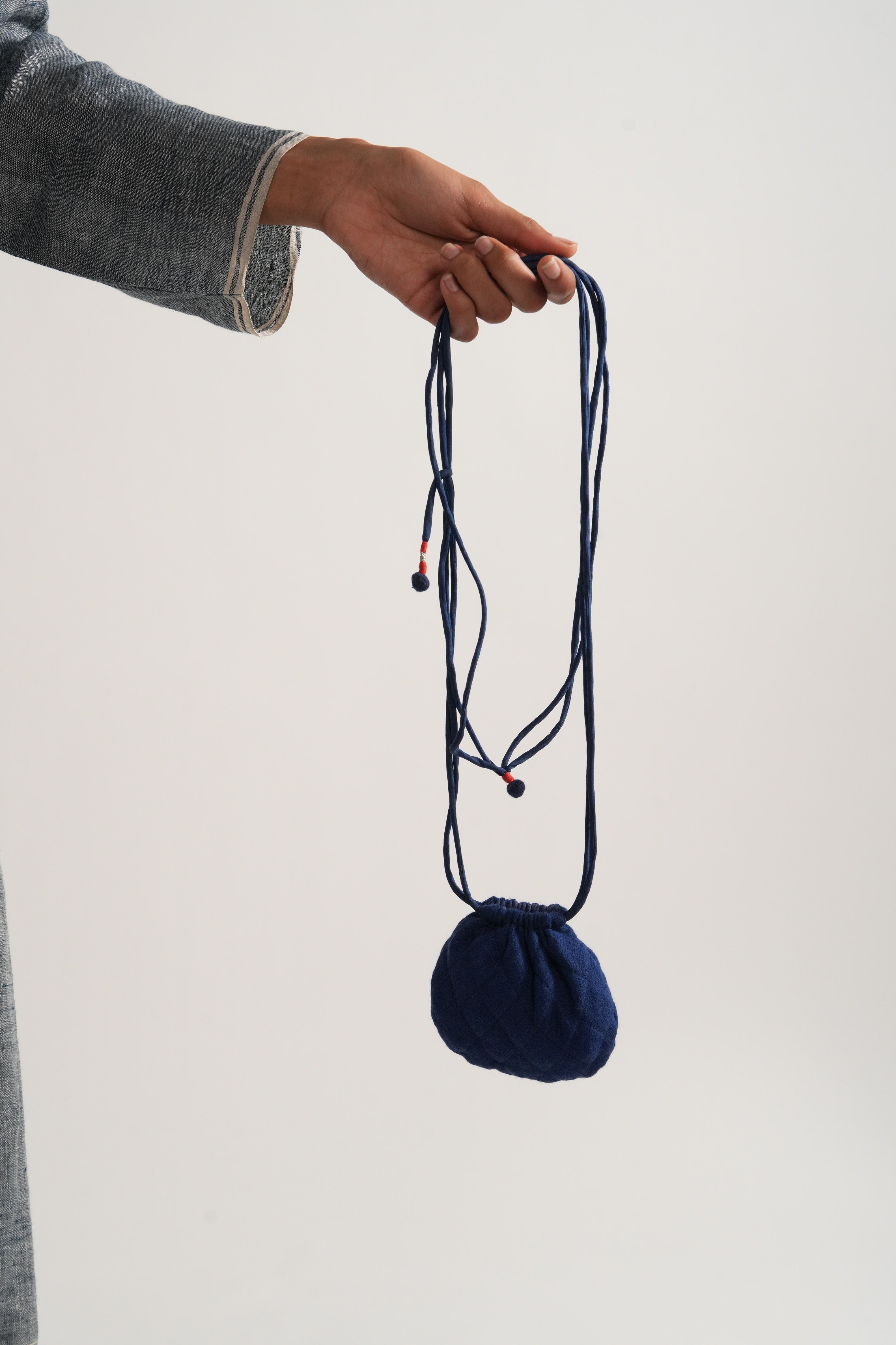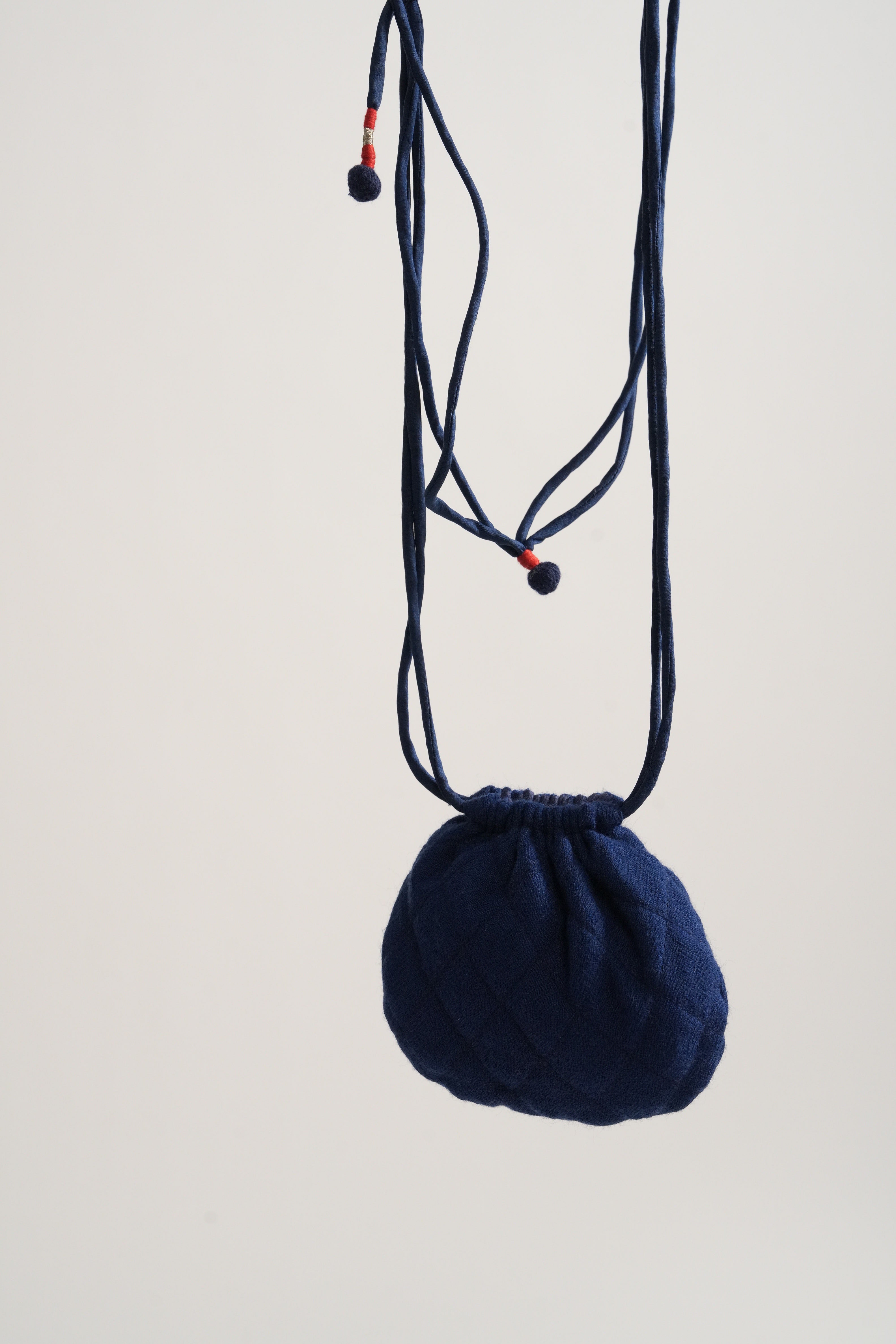 Tiny quilted wool bag with length- 4" and width- 4.5"
