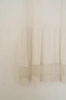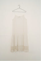 Spaghetti strap underlayer in handwoven cotton silk with organza panel on bottom featuring embroidered circular motifs.