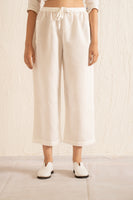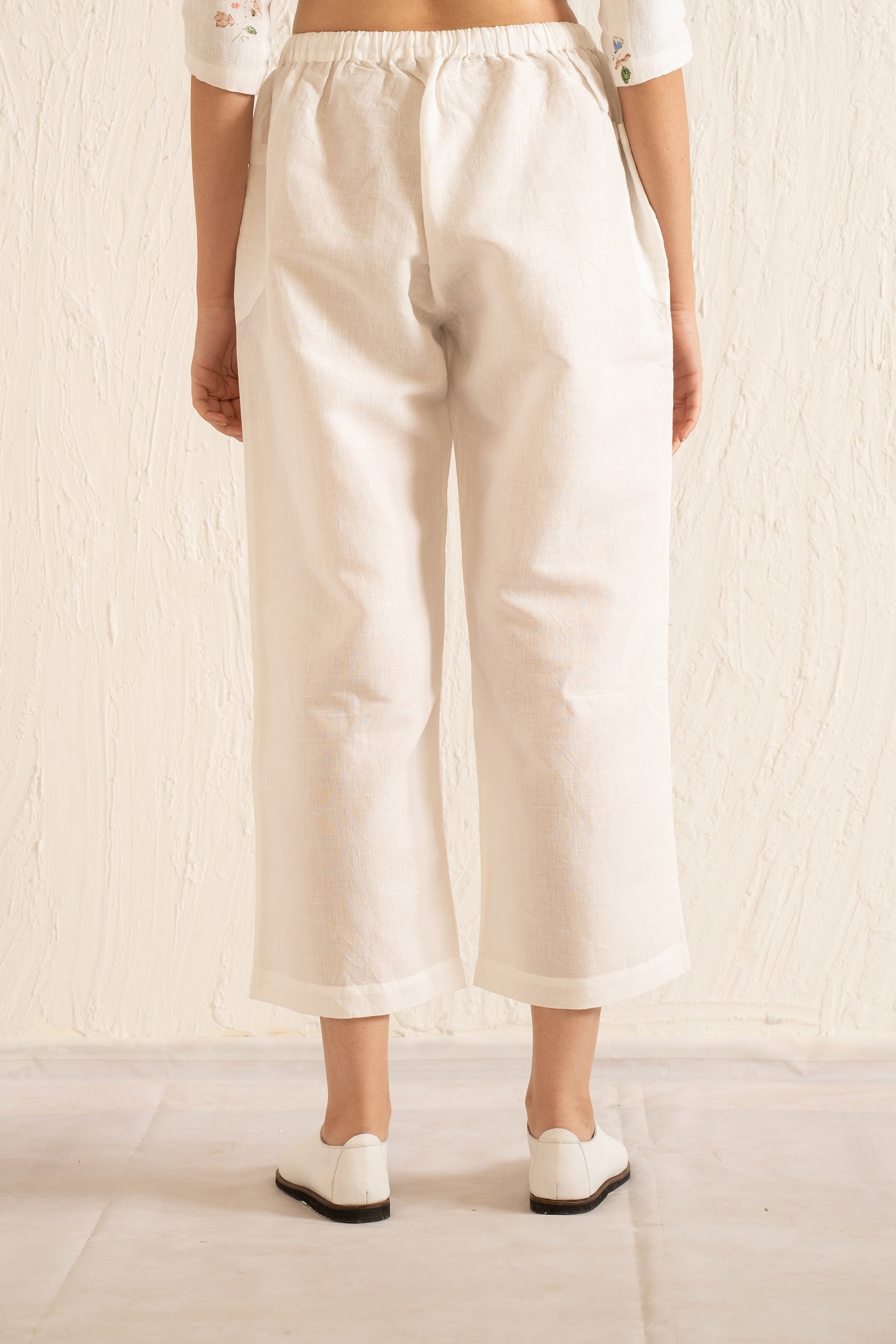STRAIGHT LEG TROUSERS WITH ELASTICATED WAIST AND DRWASTRING IN HANDWOVEN COTTON