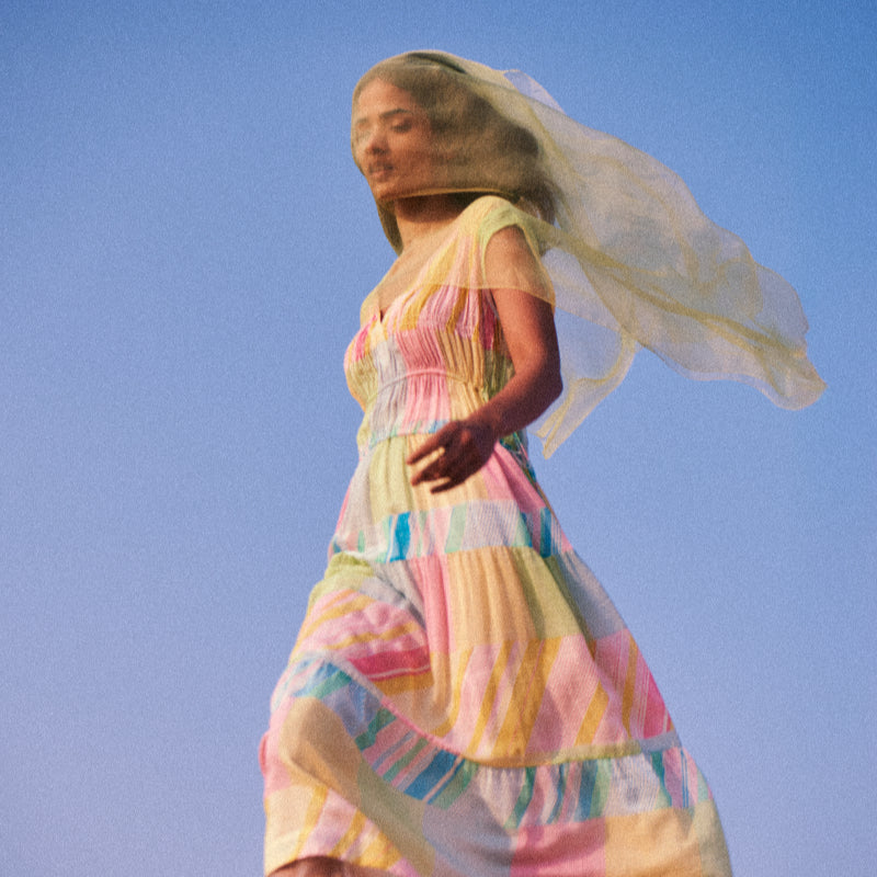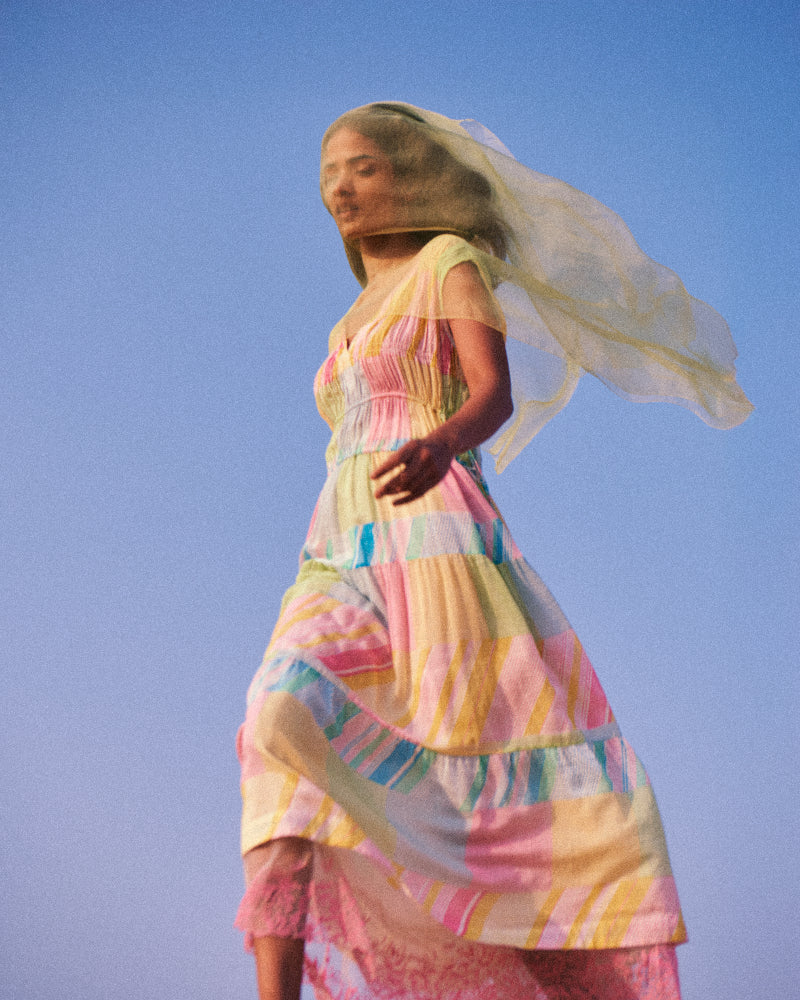 Underlayer in handwoven cotton silk with tank straps and embroidered organza trim on hemline.