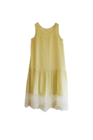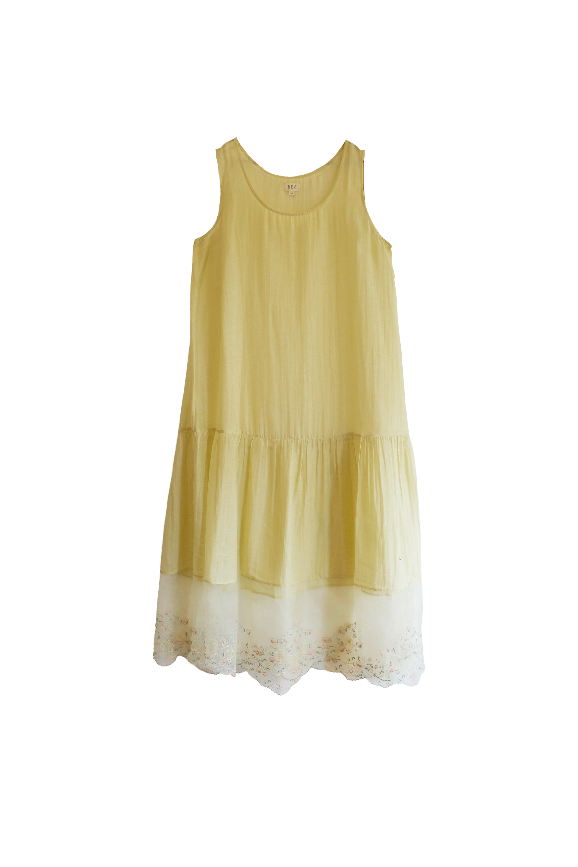 A refined tiered cotton silk lining garment with an organza embroidered hem, showcasing intricate thread work.