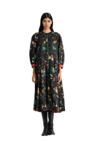 Button Down Puff Sleeved Midi Dress With All Over Floral Print In 100% Merino Wool.