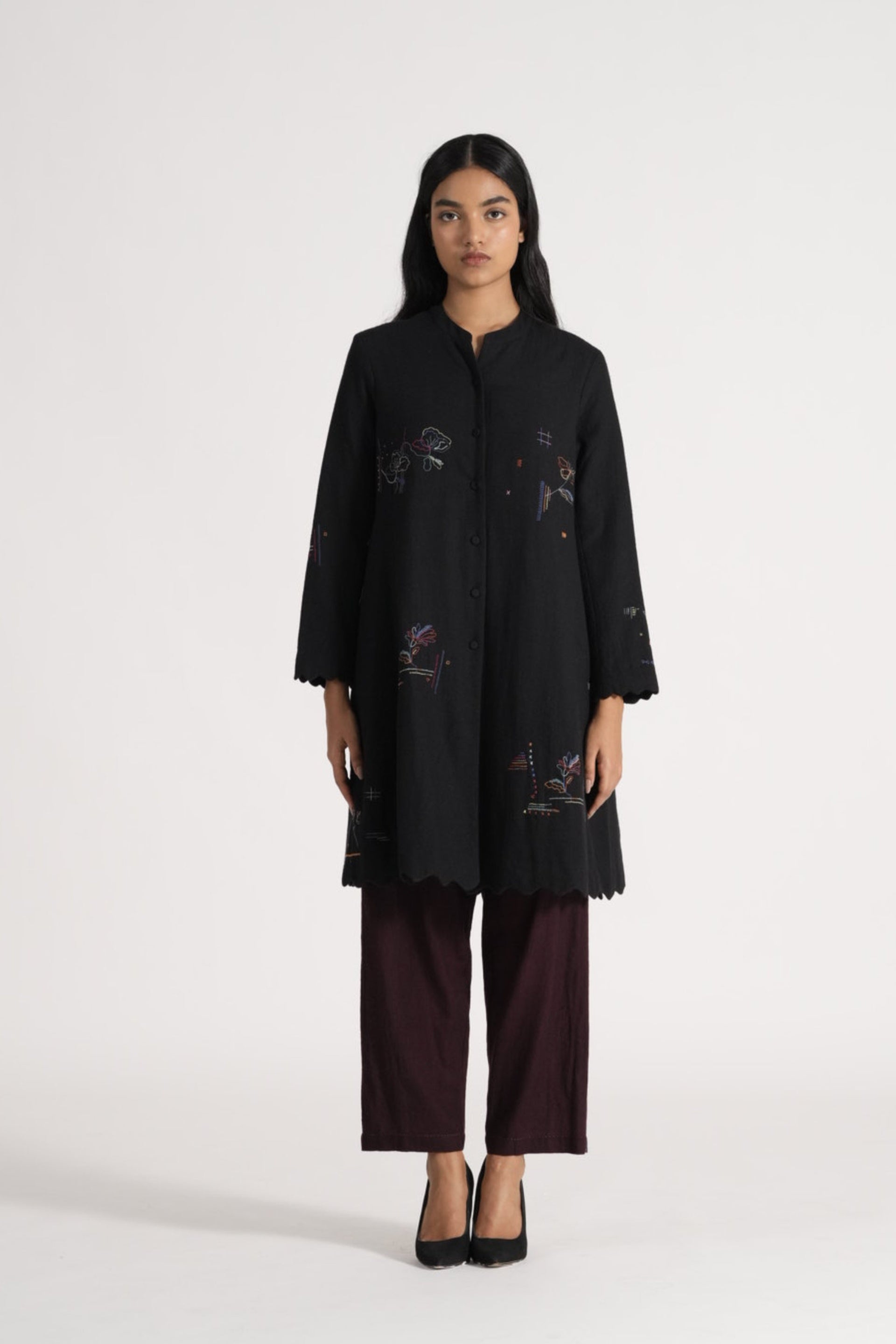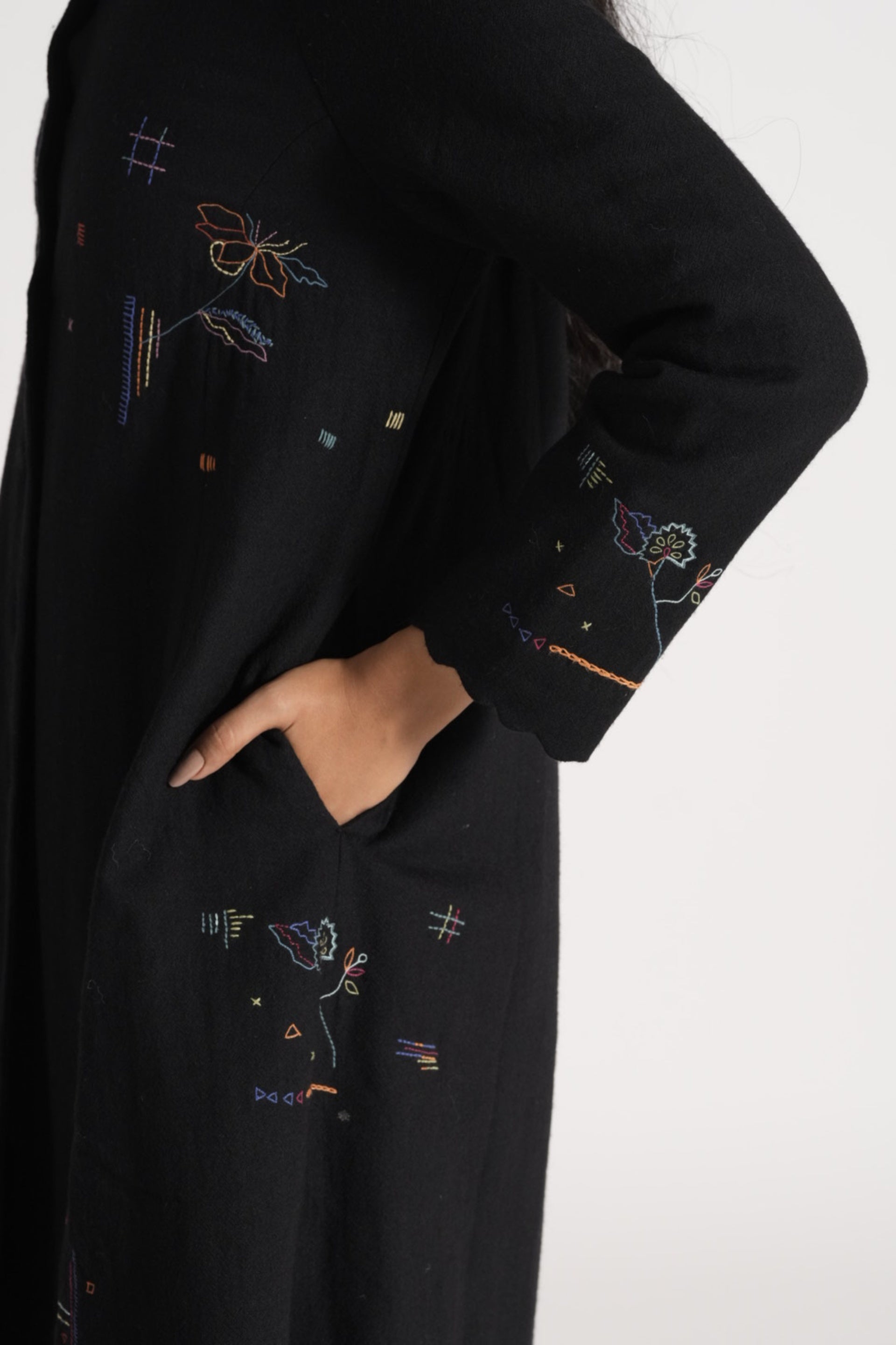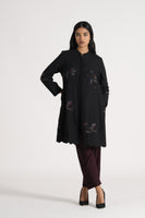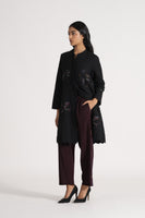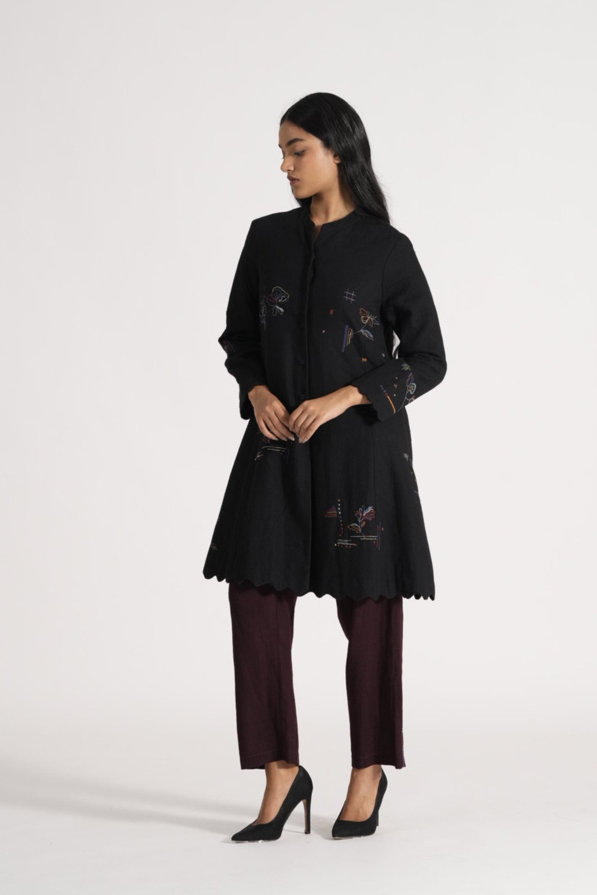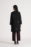 Relaxed fit short jacket in 100% wool. Comes with attched handblock print 100% silk lining.