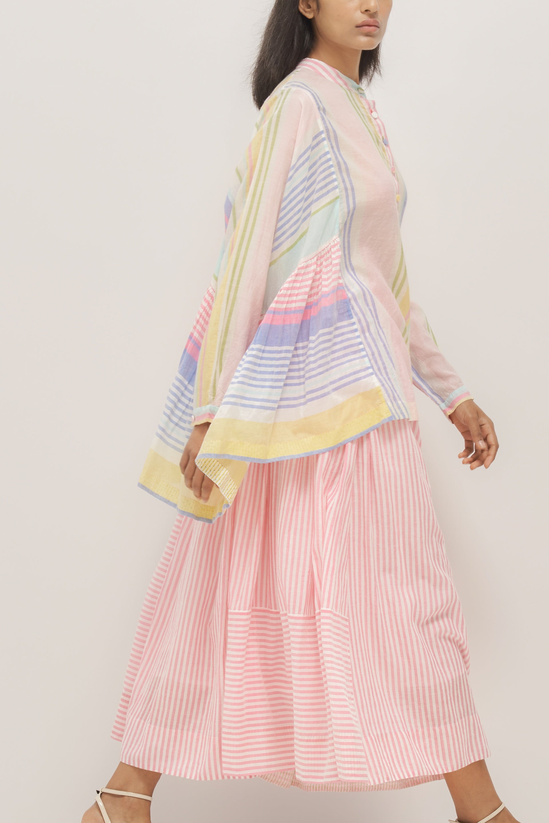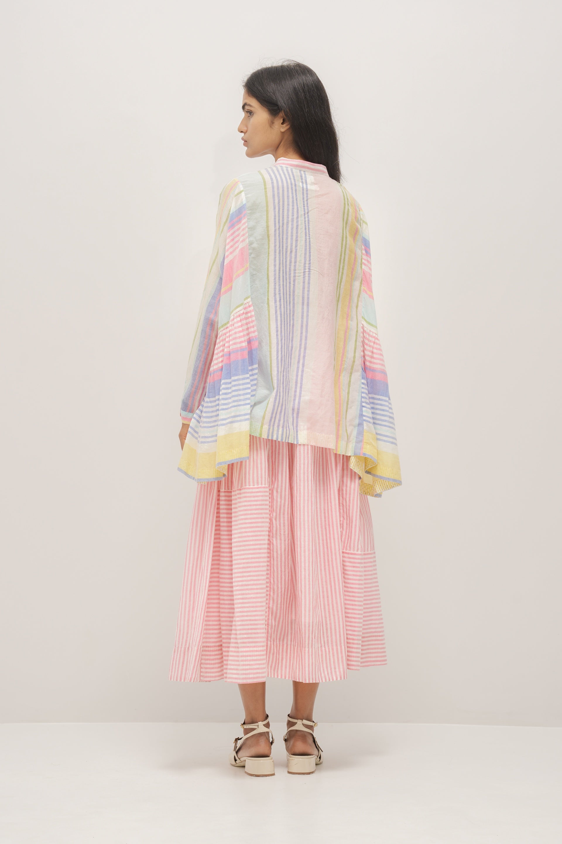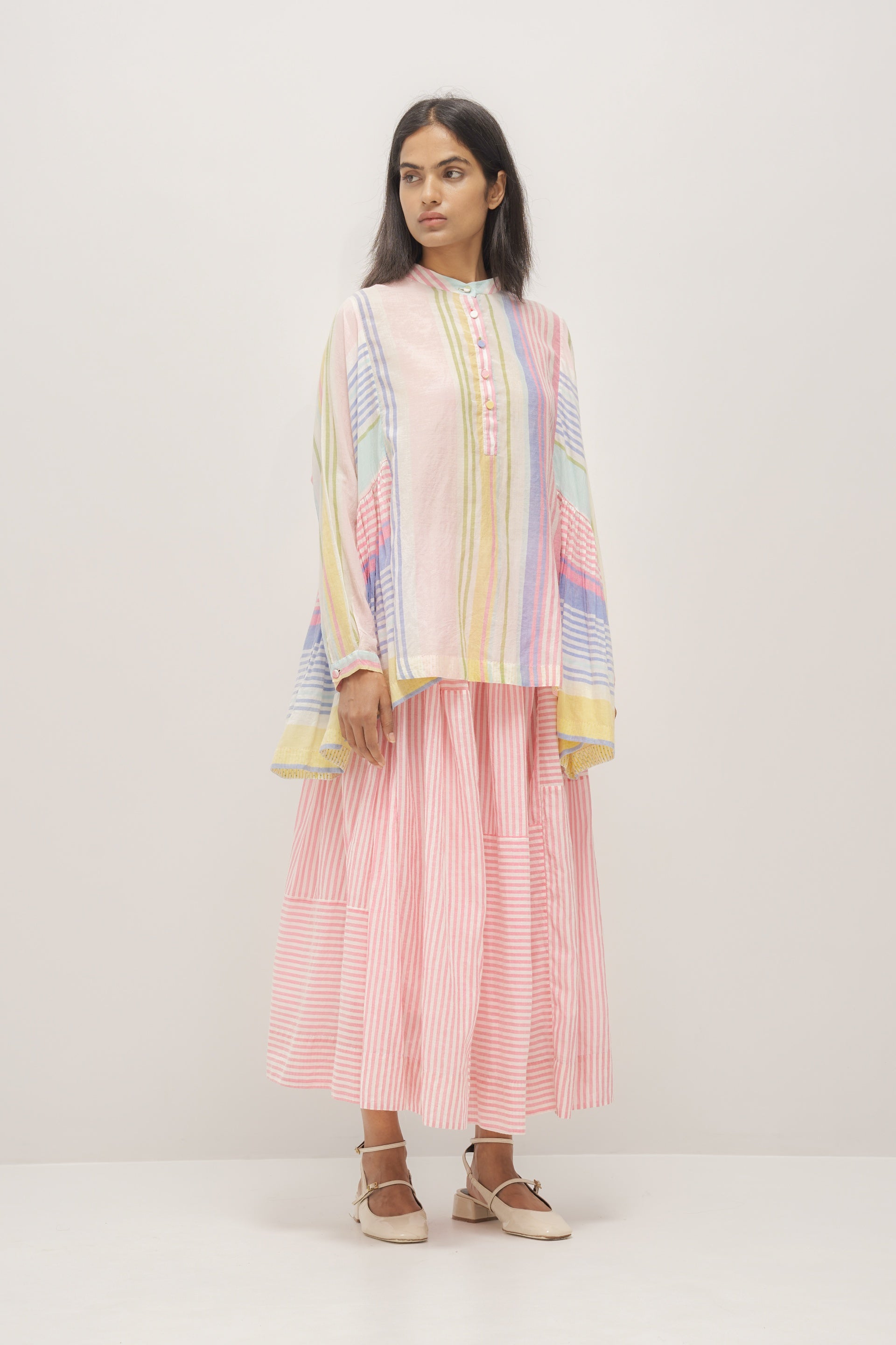 Oversized multistriper cotton silk top. Comes with a seperate plain white cotton silk lining