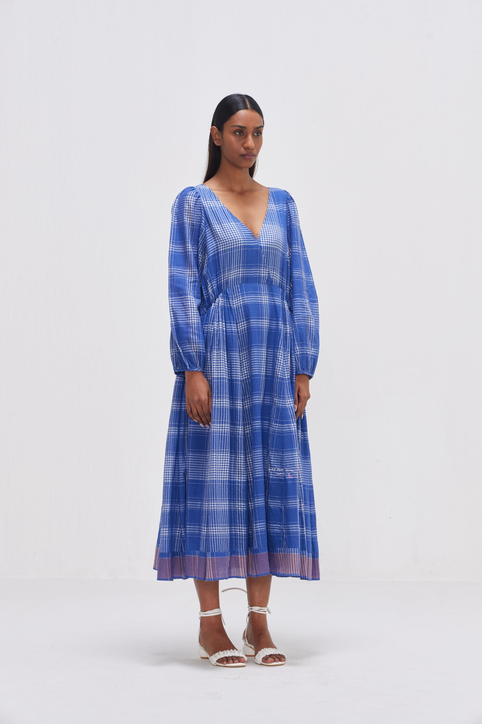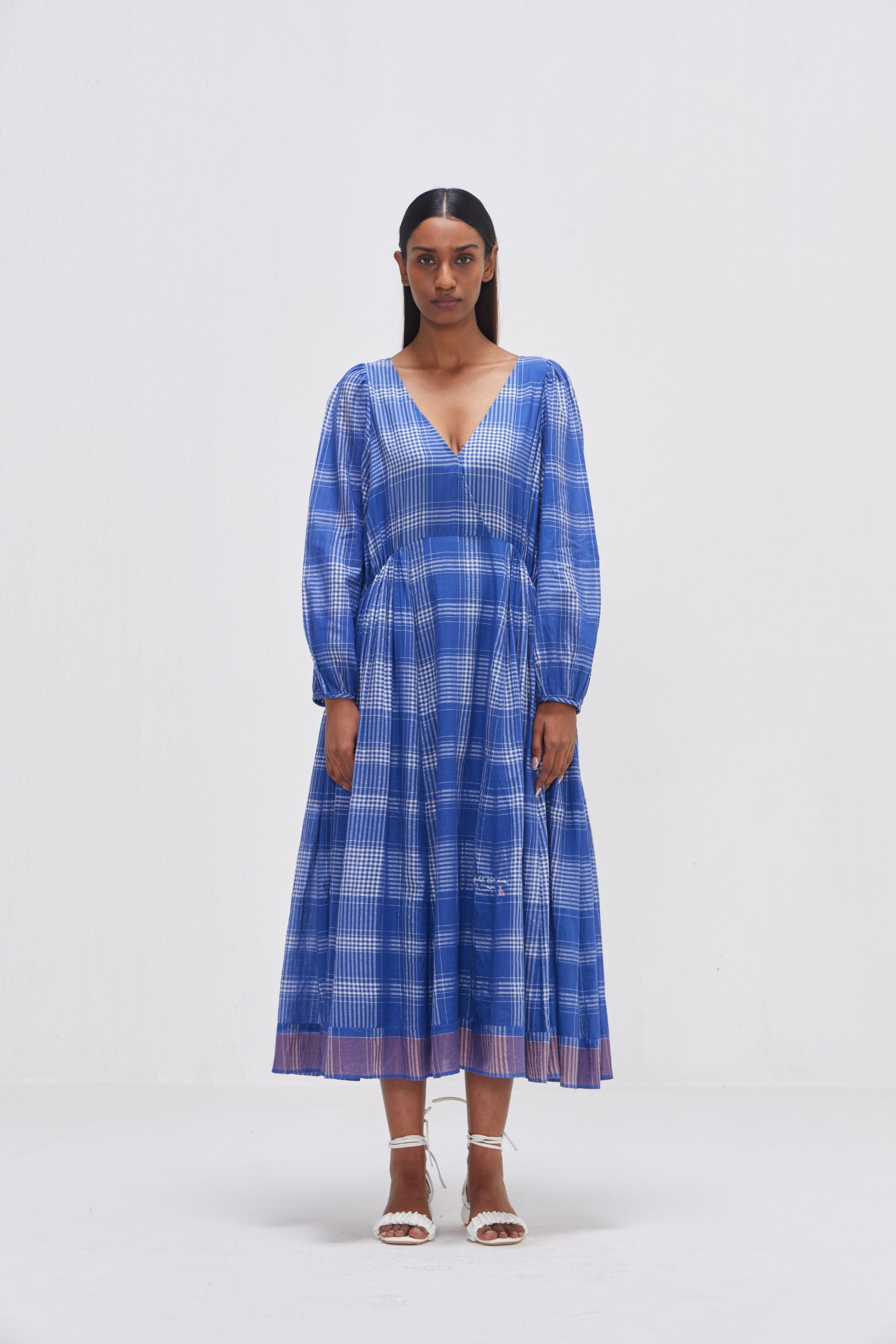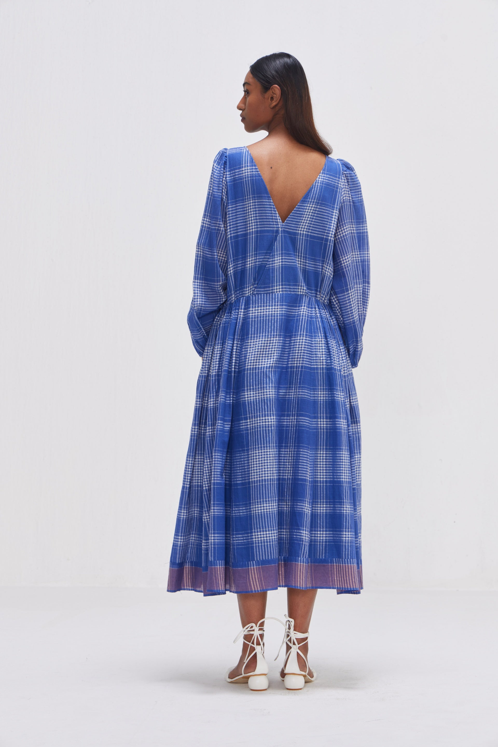 Checkered voluminious dress with contrasting border detail. Comes with an attached printed text lining