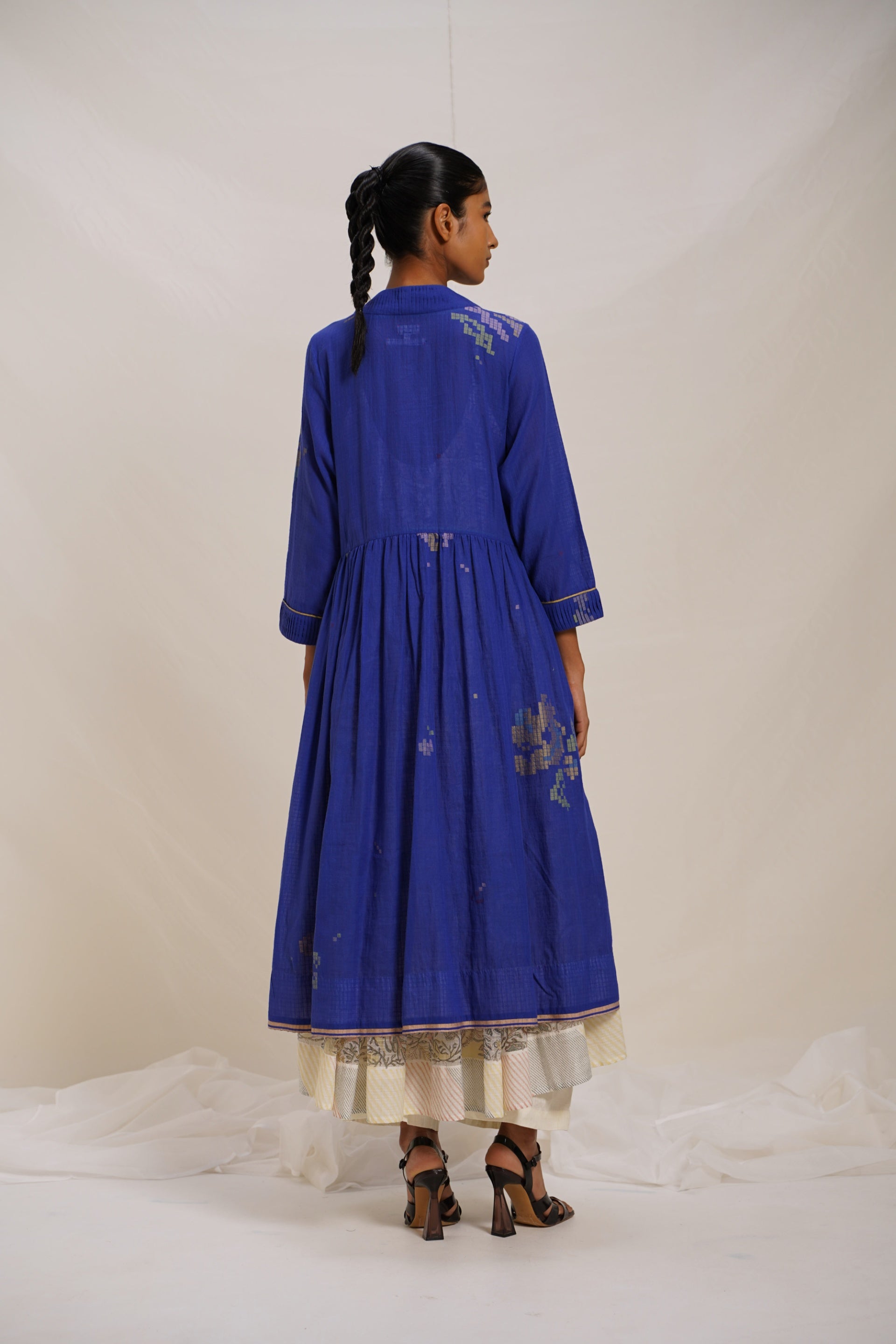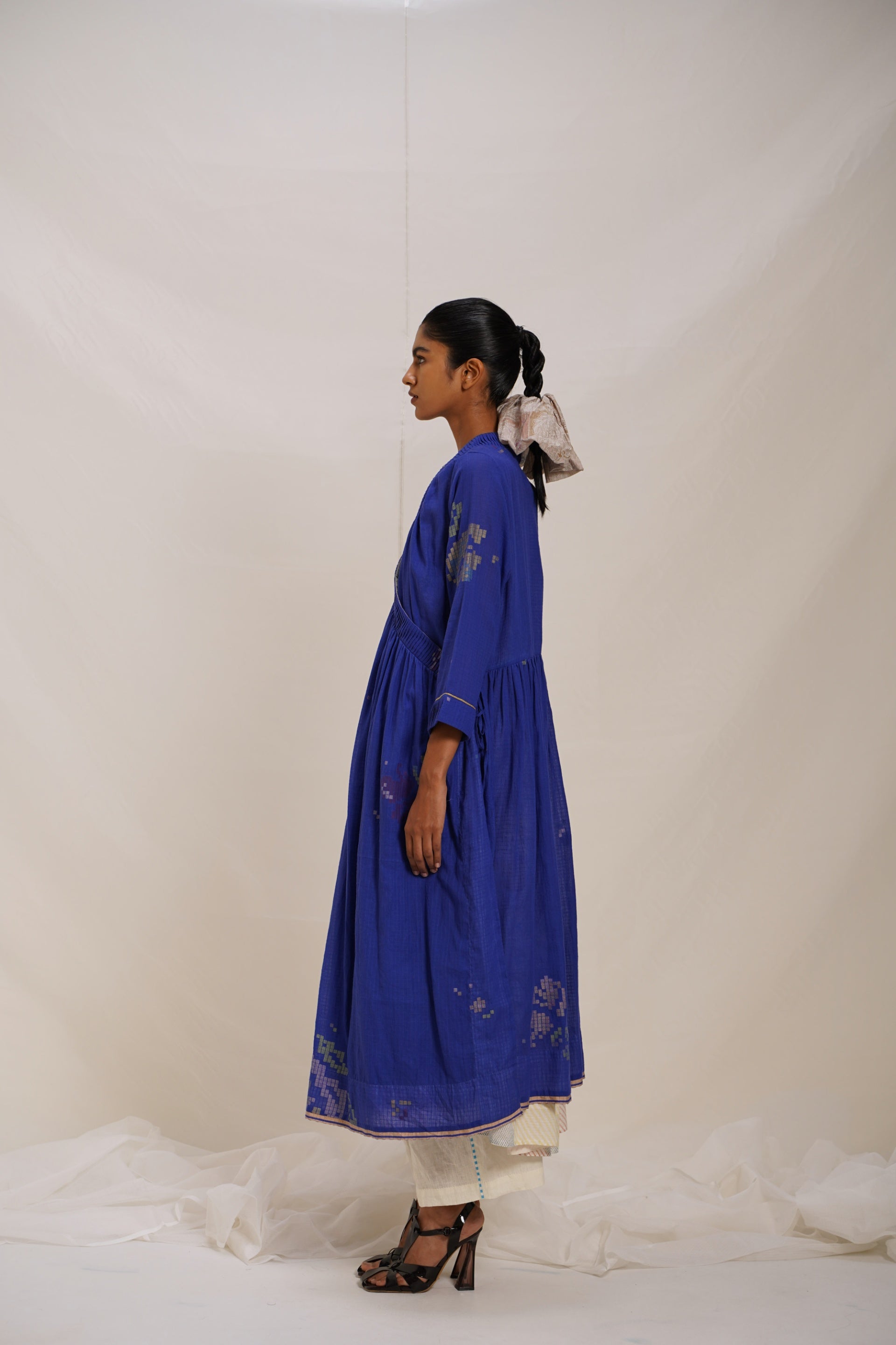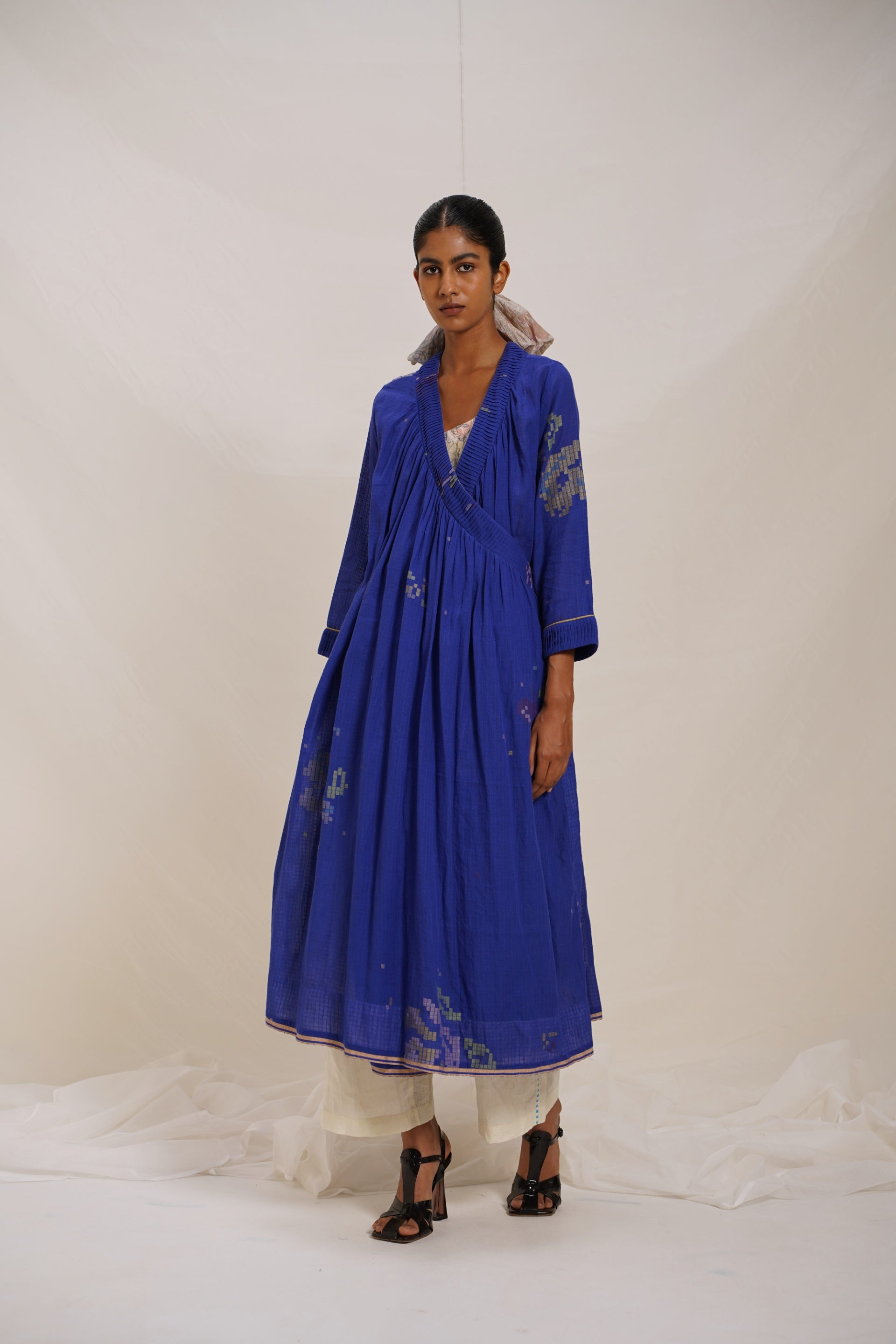 Wrap dress with tie ups and contrasting selvedge detail. Comes with a seperate hand block printed lining with crochet trim