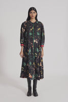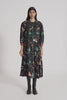 Button Down Puff Sleeved Midi Dress With All Over Floral Print In 100% Merino Wool.
