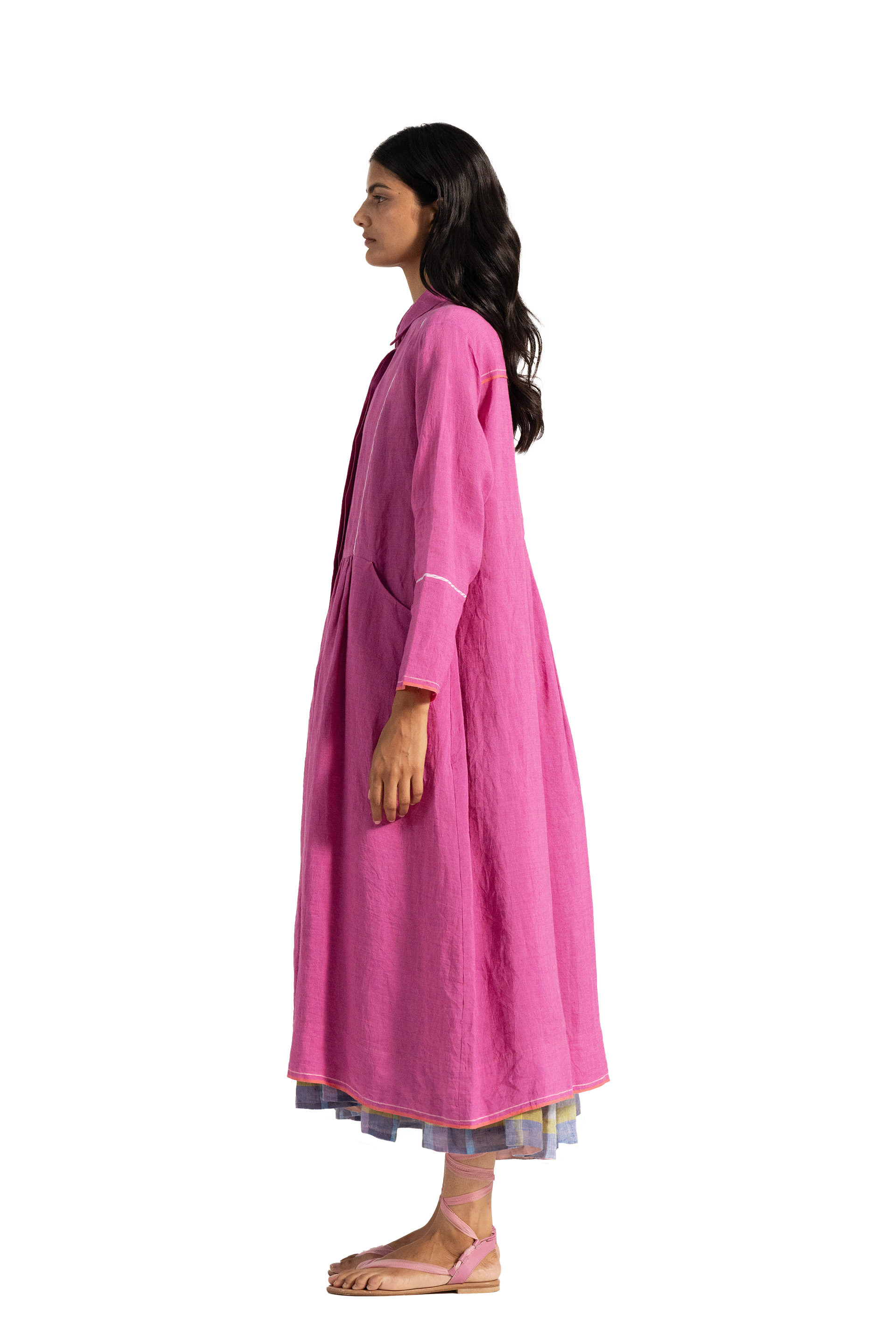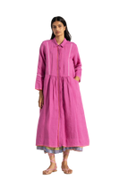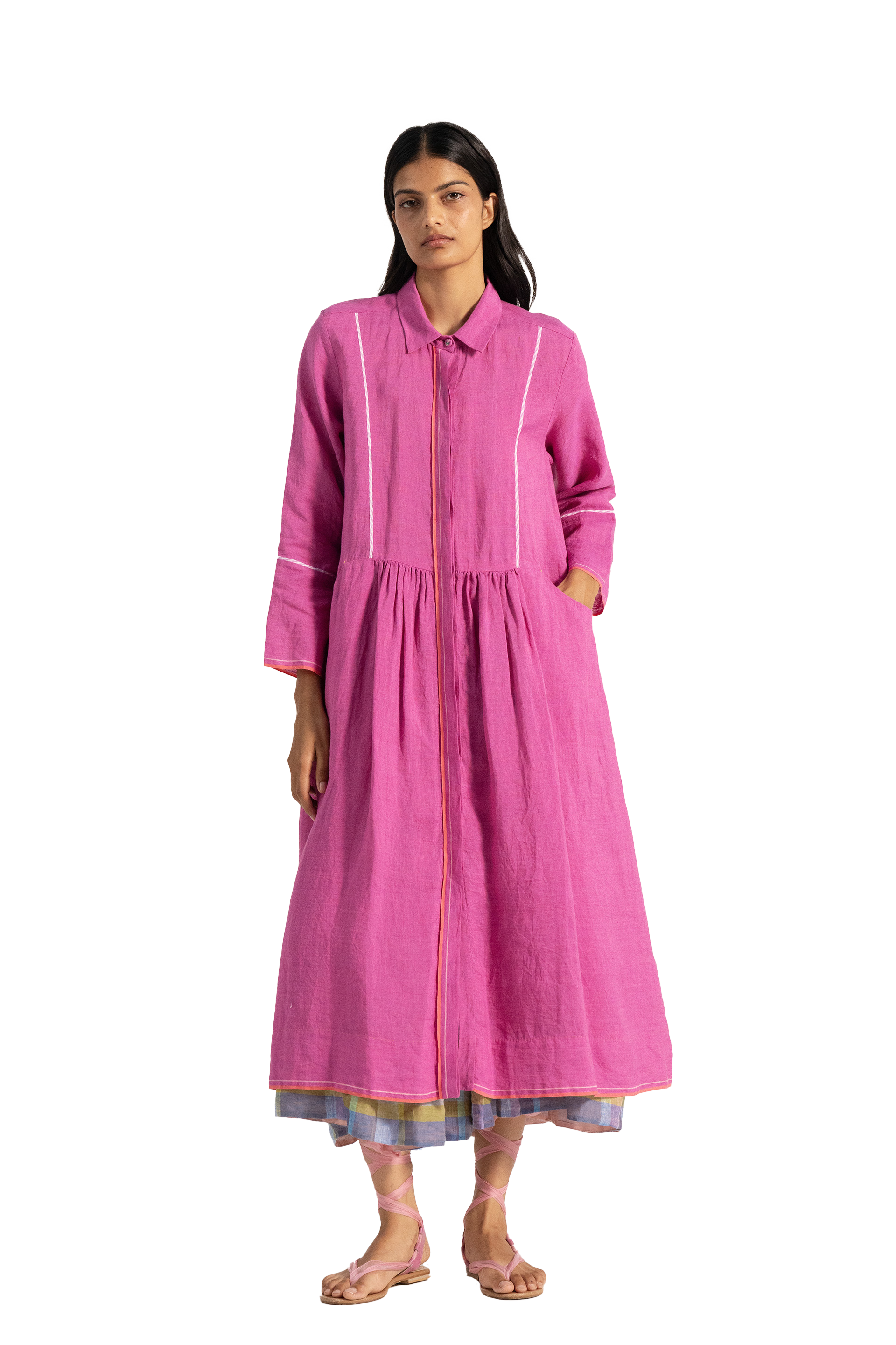 Button down midi dress with collar in 100% linen. With piping detail on the seams.