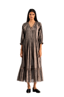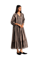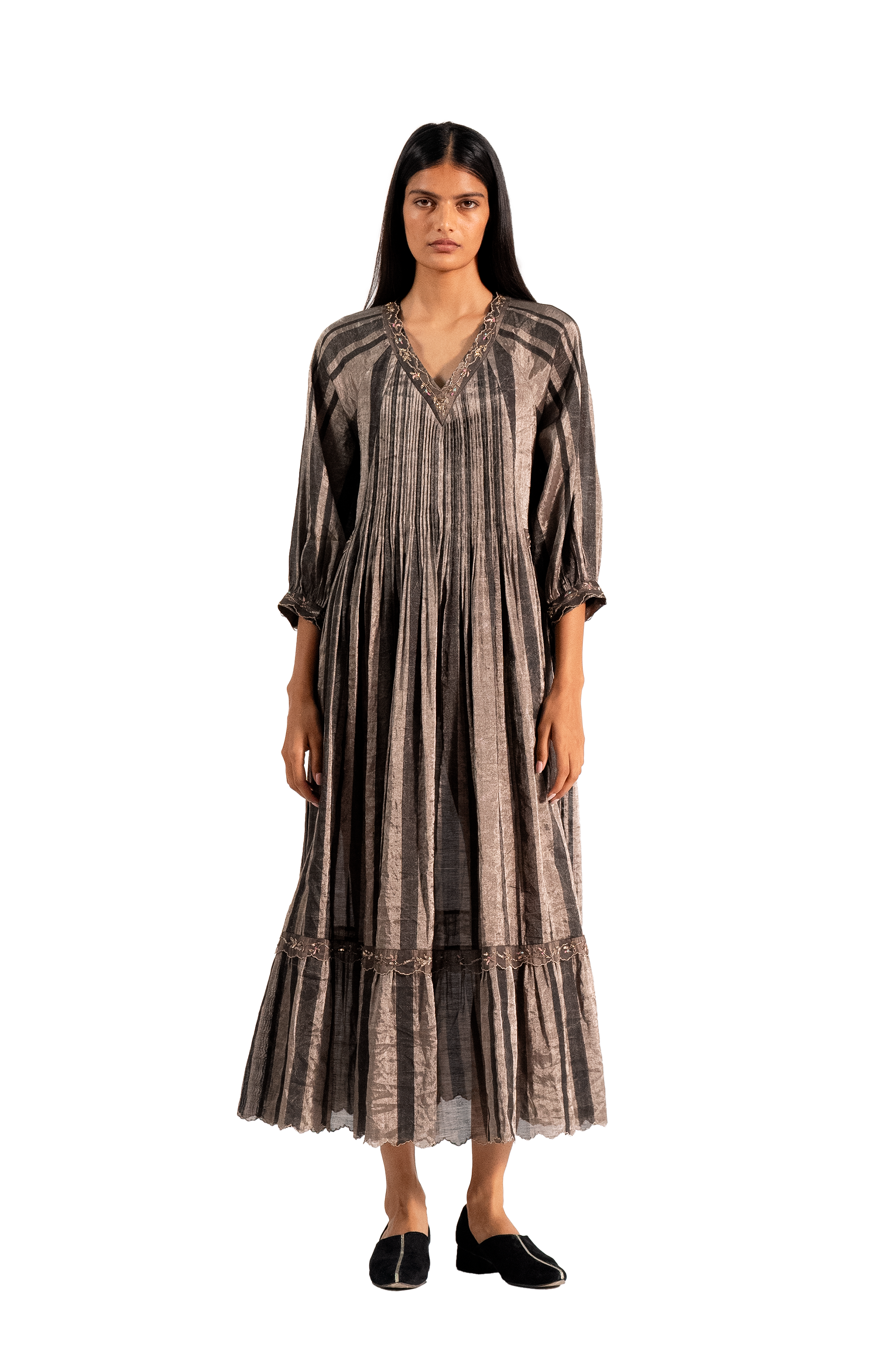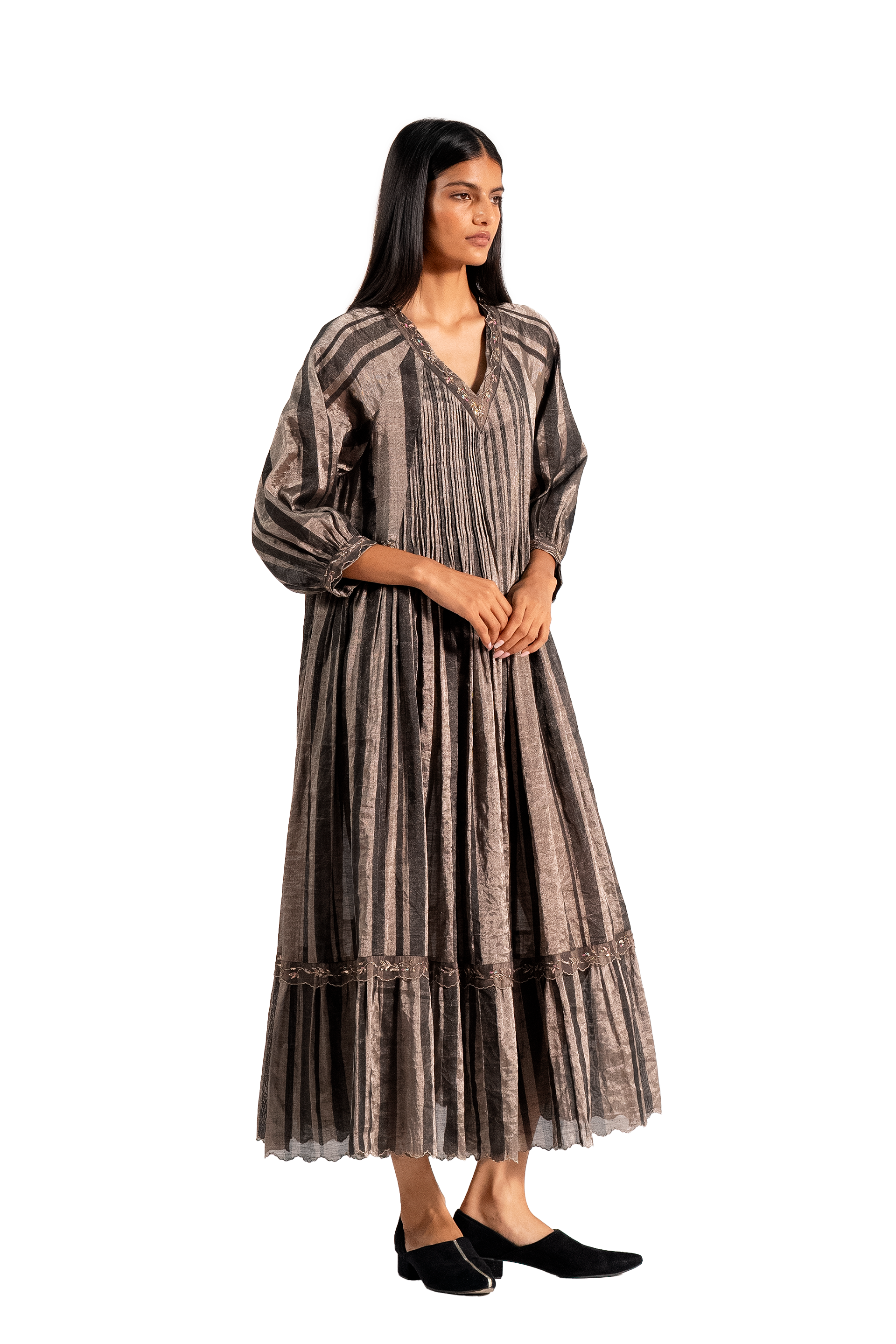 Tiered Dress With Pintucks At Yoke Along With Scalloped Organza Trim Detail And Hand Embroidered Borders. Comes With A Separate Cotton Silk Lining.