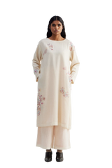 Kasuti—is a traditional folk style embroidery technique. It is known for intricate, geometric needlework. Reflecting themes from nature, temples, animals, and birds like peacocks and lotus flowers, each motif celebrates life with vibrant colors and patterns. In EKÁ, motifs are creatively broken up and reinterpreted on garments, blending diverse stitches and colors for a contemporary look that honors Kasuti’s handmade heritage.