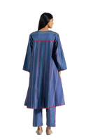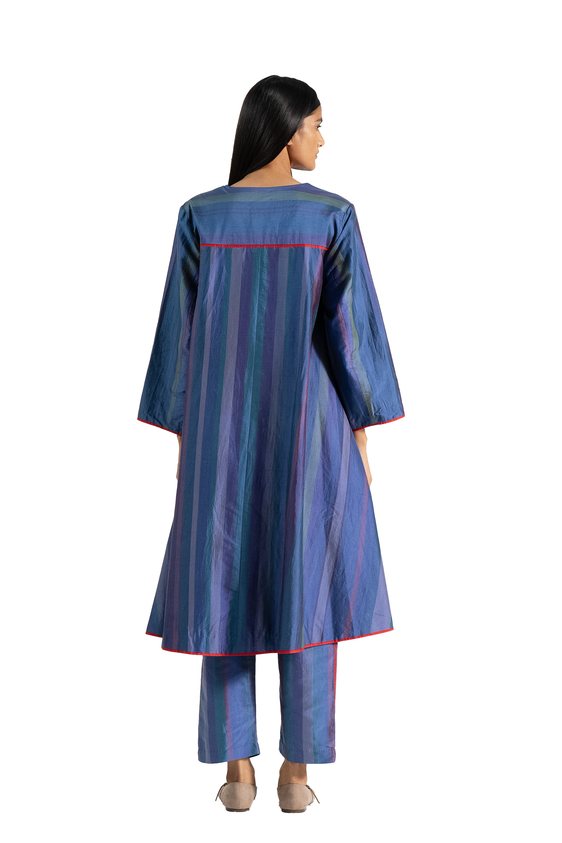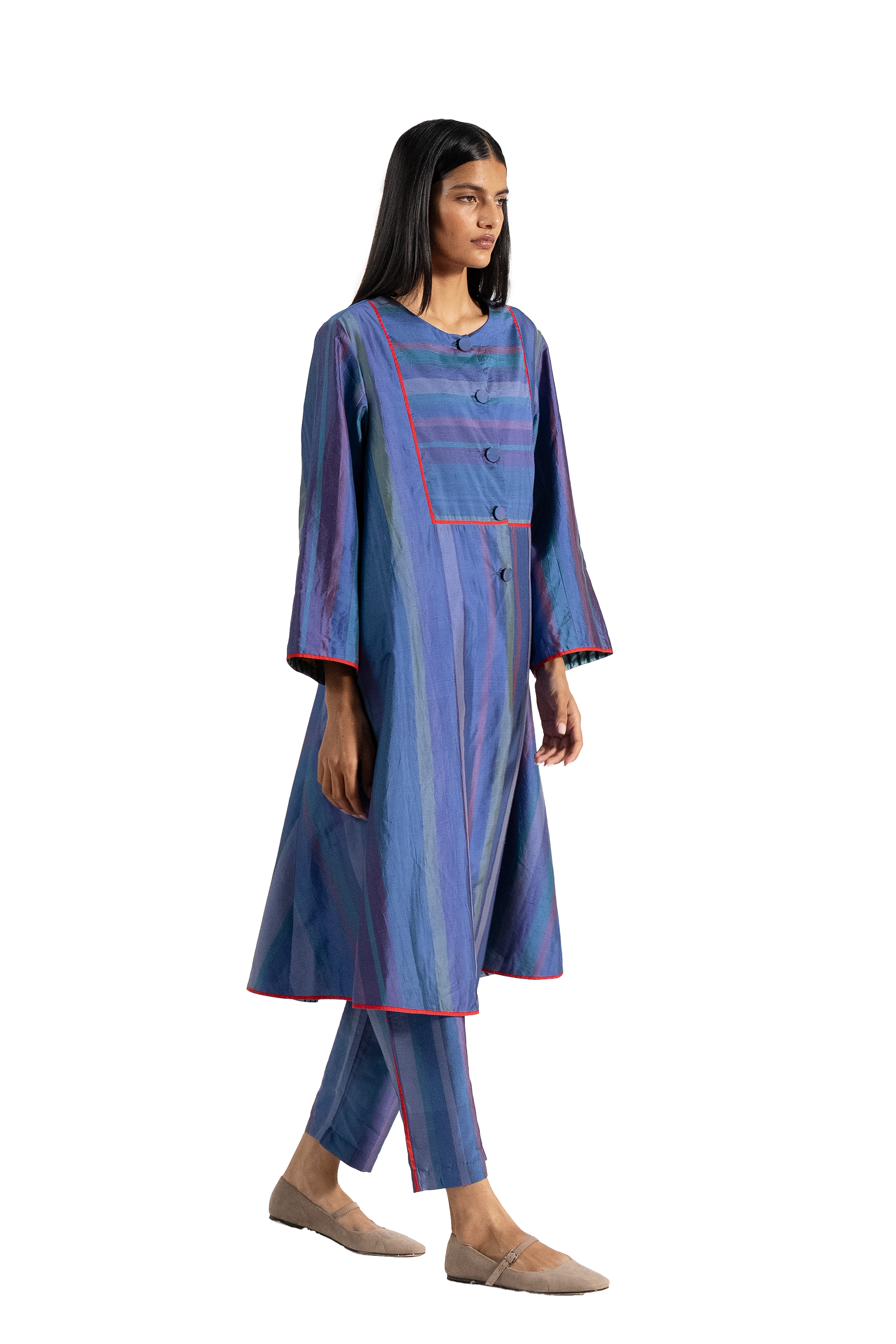 Relaxed Fit Midi Length Kurta In Tonal Self Striper 100 % Silk. Comes With A Tonal Self Striper 100 % Silk Trouser.