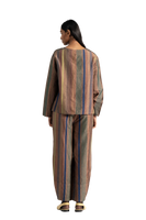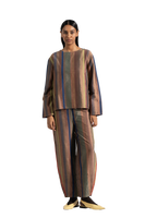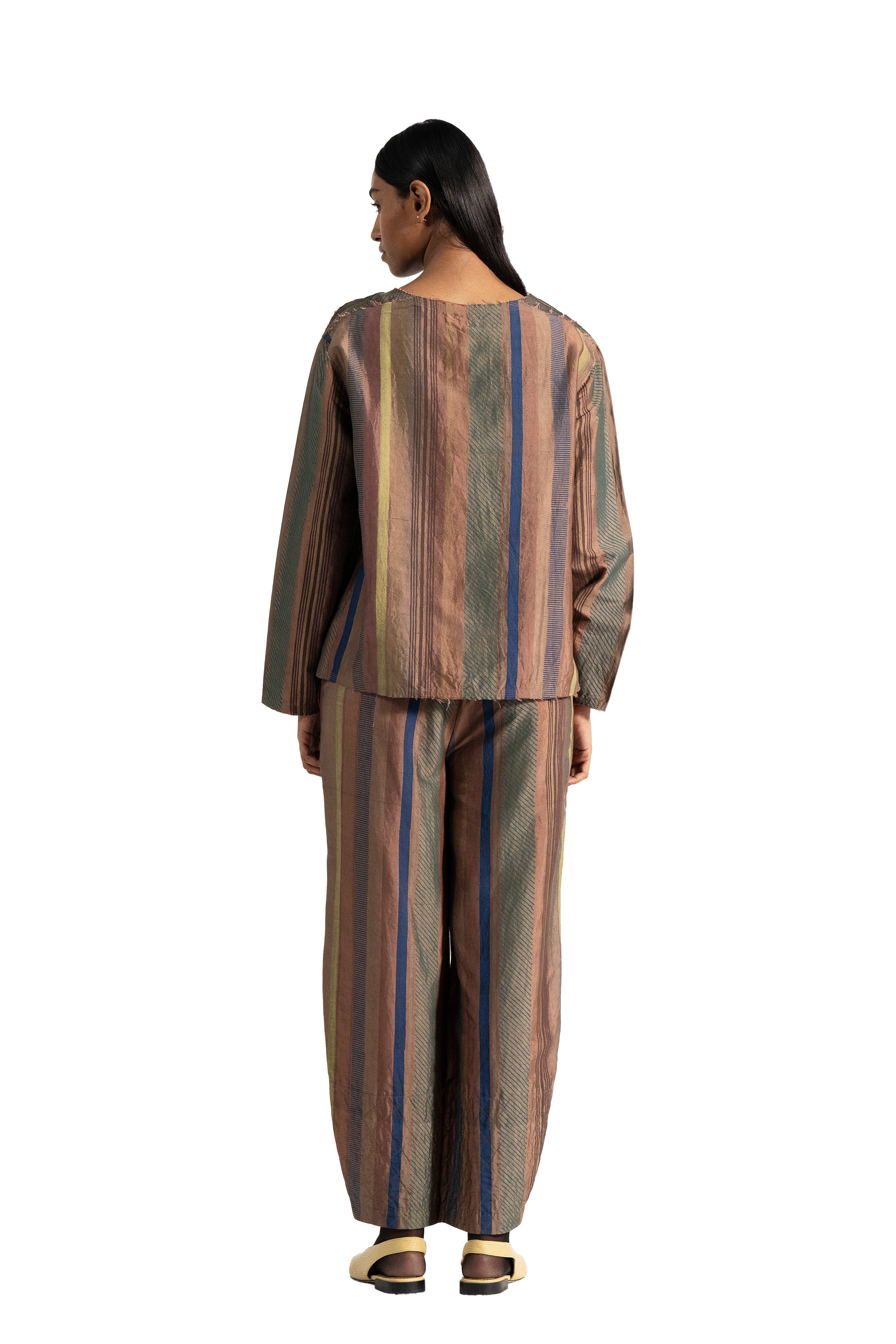 Baggy High Waist Trousers With Quilted Hem Detail In 100% Silk