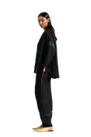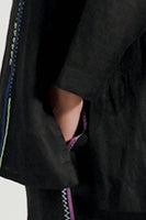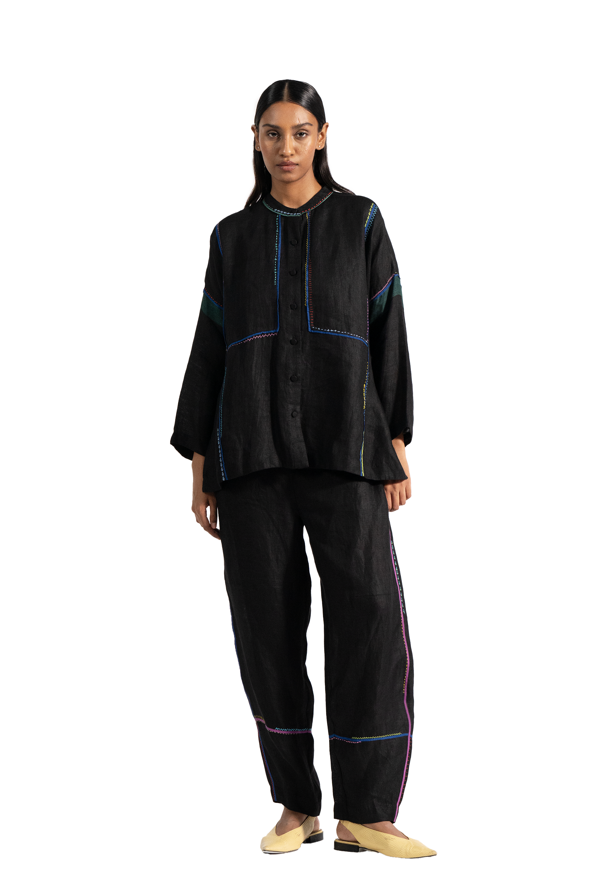 High Low Hem Relaxed Fit Shirt With Multicolor Delicate Hand Stitch Detail In 100% Linen.