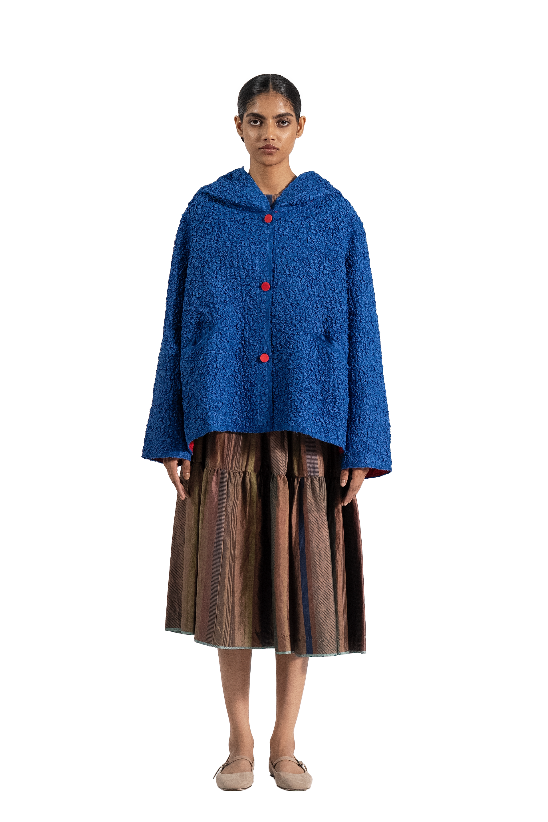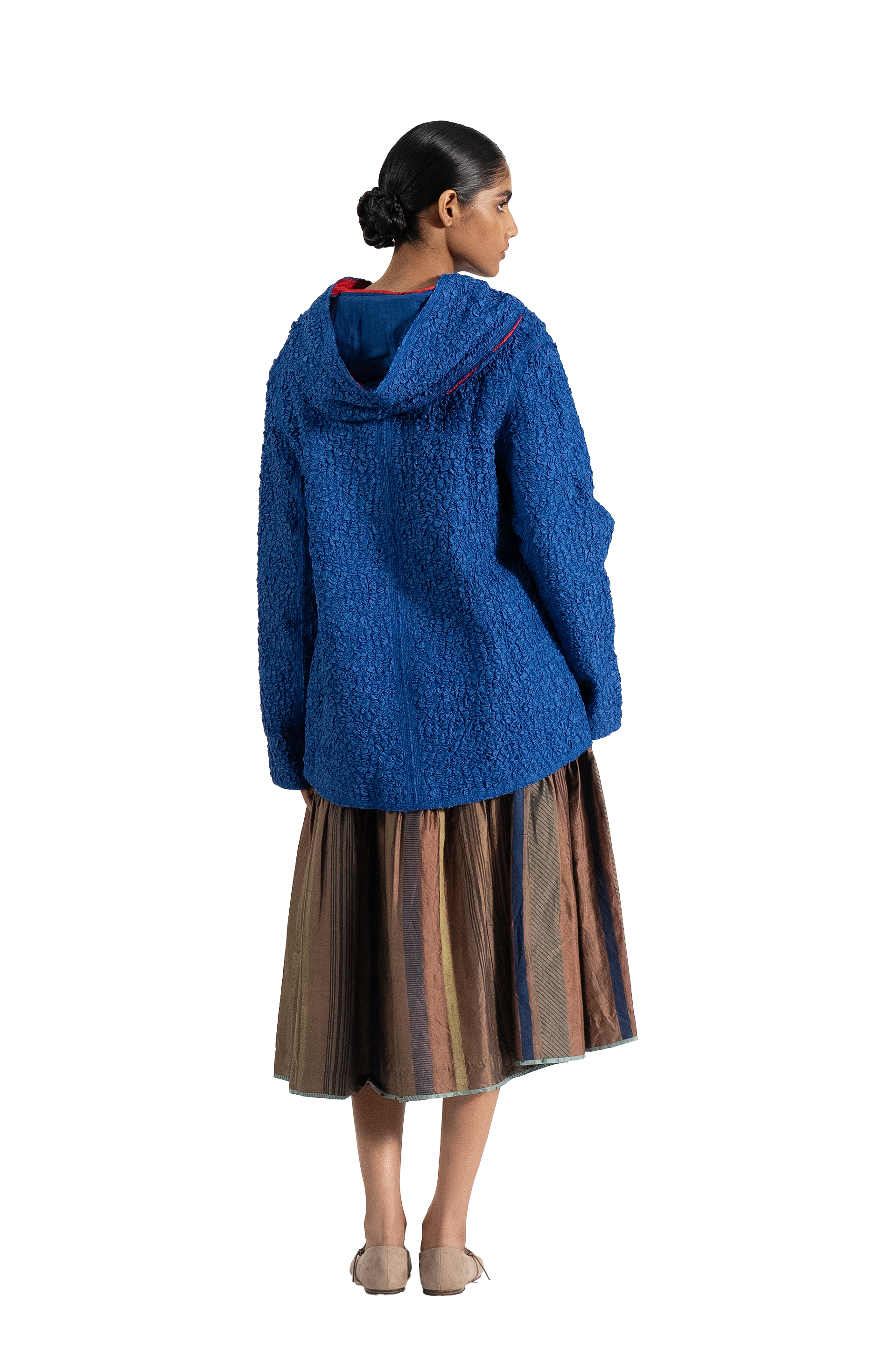 Short Hooded Jacket In 100% Smoked Textured Silk. Comes With An Attached Lining.