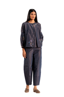 Jewel Neck With Balloon Shape Bodice Full Sleeved Top In 100% Silk Taffeta With 100% Silk Lining.