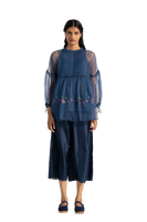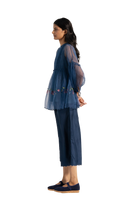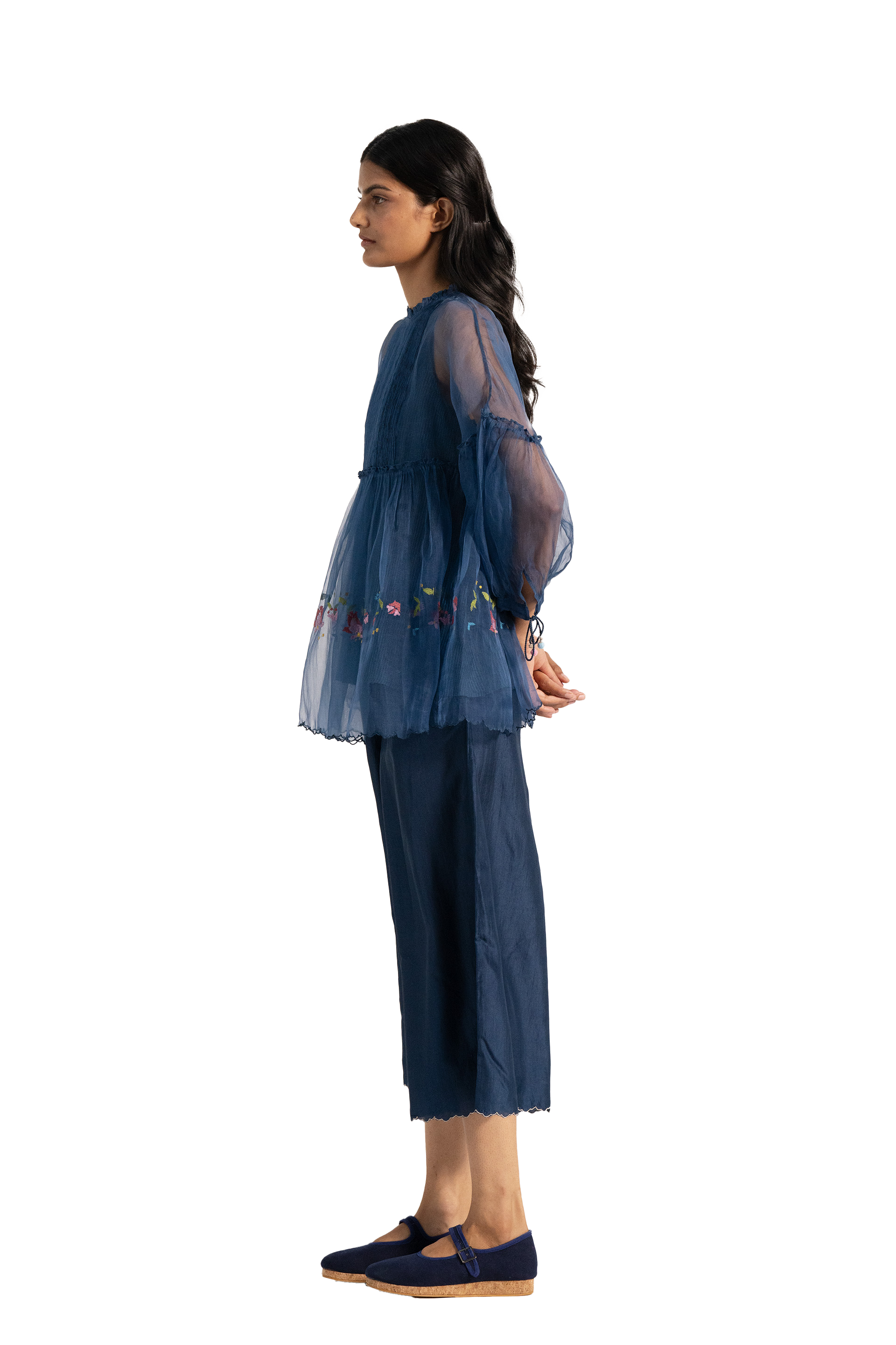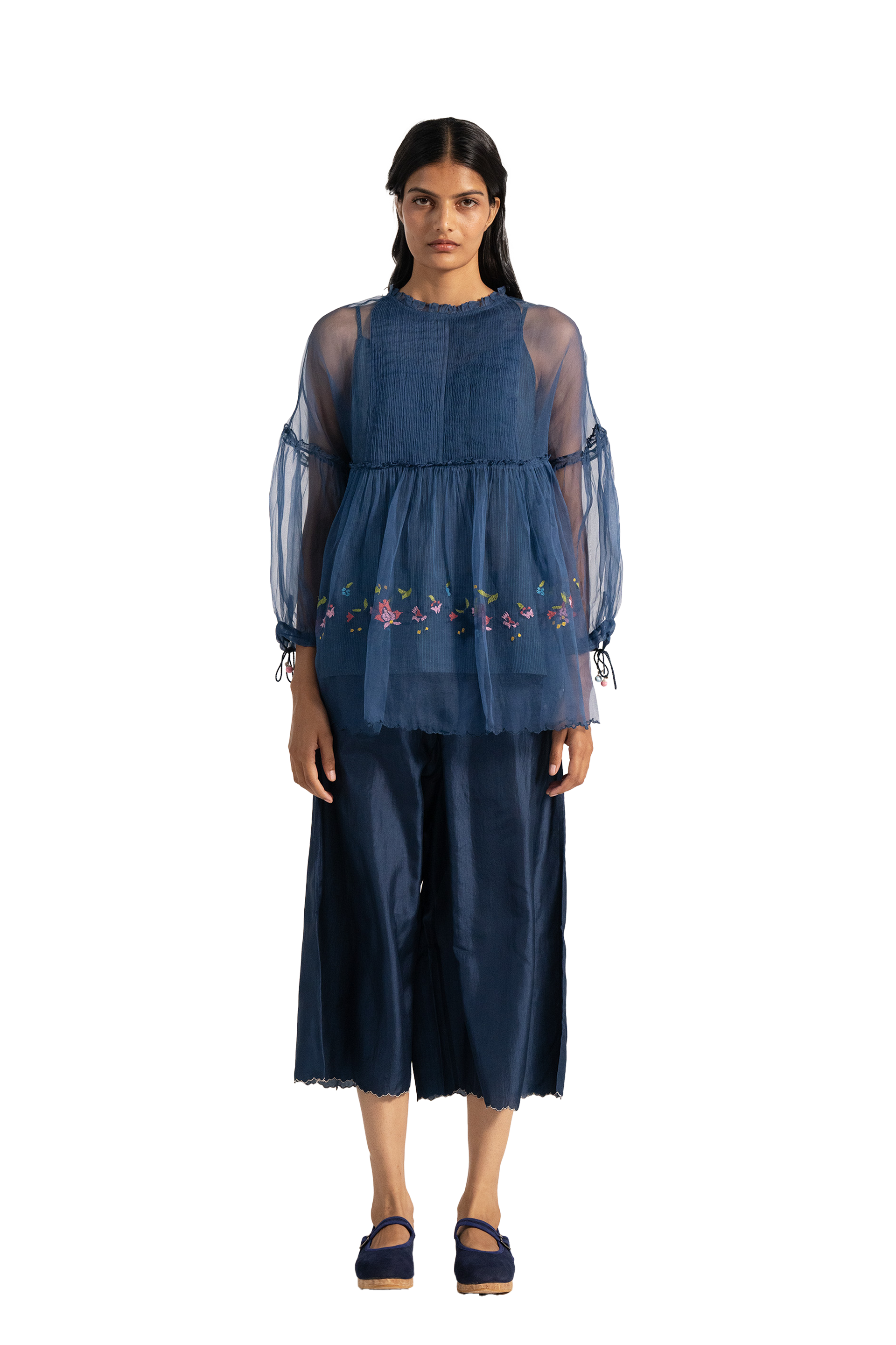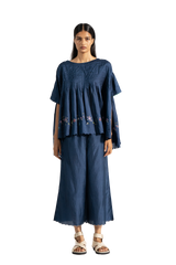 Wide leg straight fit trouser with scallop details on hem.