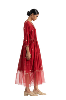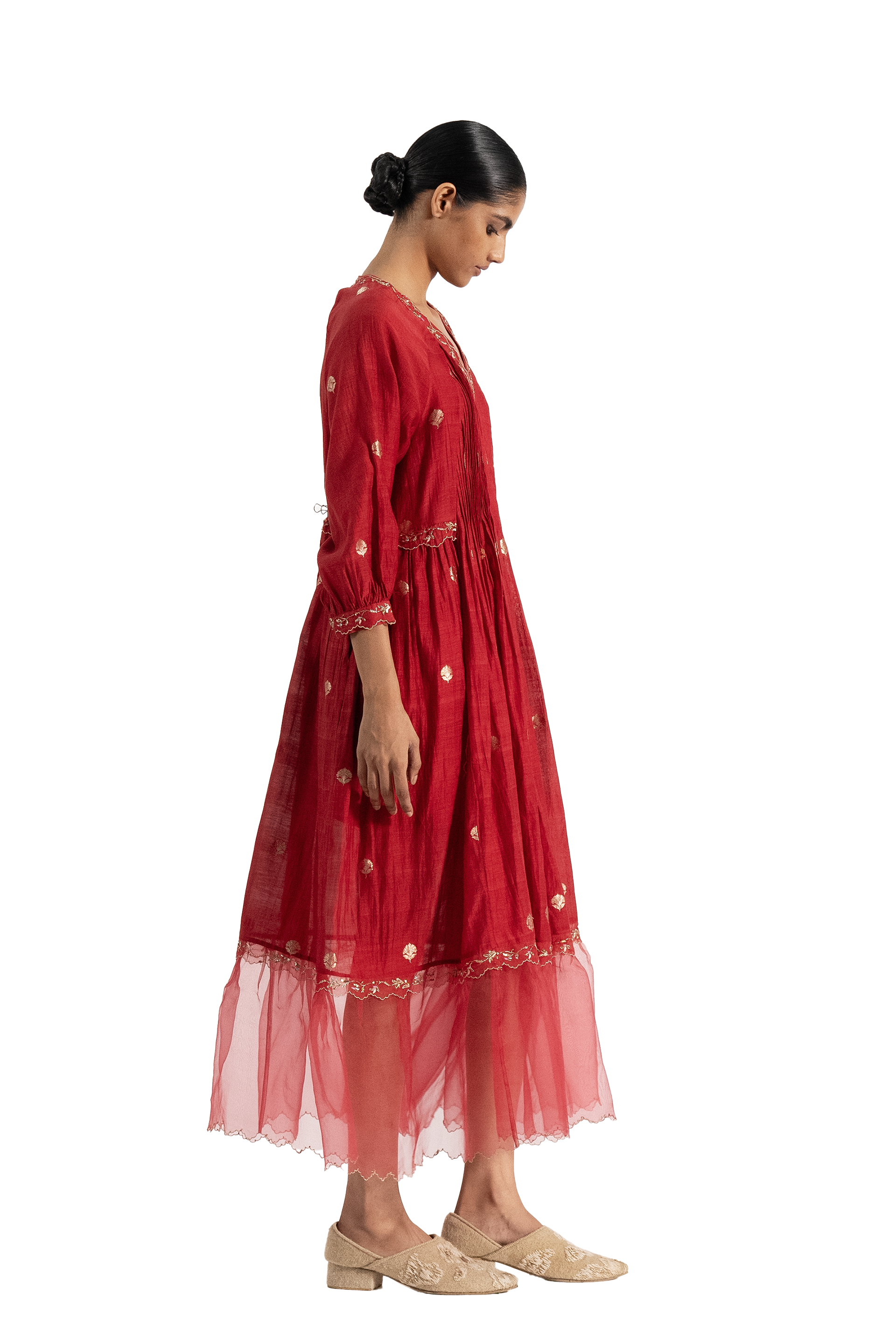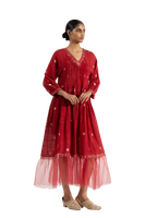 Tiered Dress With Butti Detail And Pintucks At Yoke Along With Scalloped Organza Trim Detail And Hand Embroidered Borders. Comes With A Separate Cotton Silk Lining.