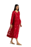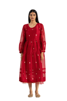 A Round Neck Tiered Dress In Puff Sleeve Detail With Drawstrings At Sleeve Hem Along With Pin Tucks And Selvedge Detail At Hem. Comes With A Separate Cotton Silk Lining.