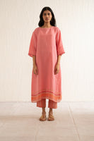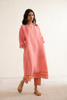 Straight fit tunic with a striper zari border features a button down centre back placket with delicately embroidered buttons.