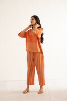 Orange v-neck, half linen-half zari cropped top with all over delicate v-neck, half linen-half zari cropped top with all over delicate hand block floral print