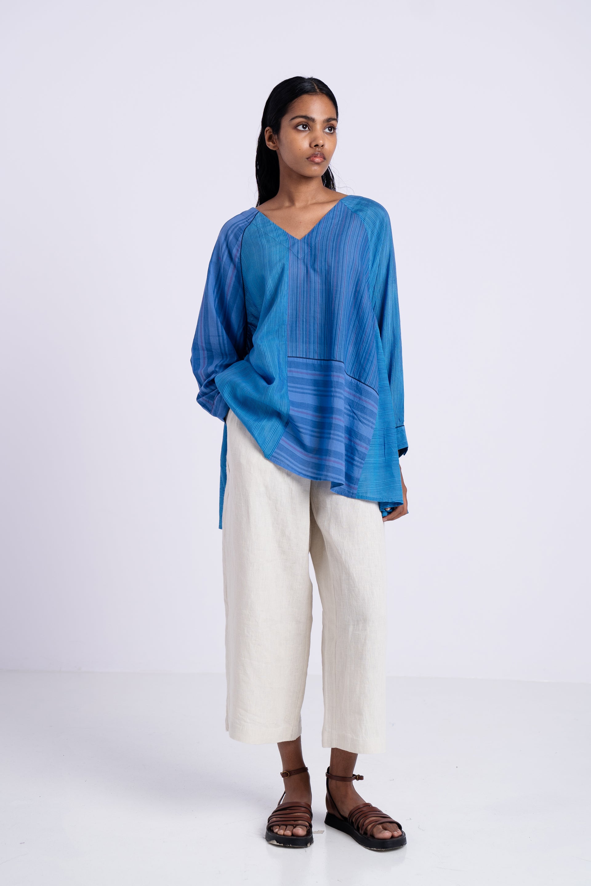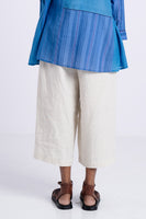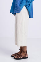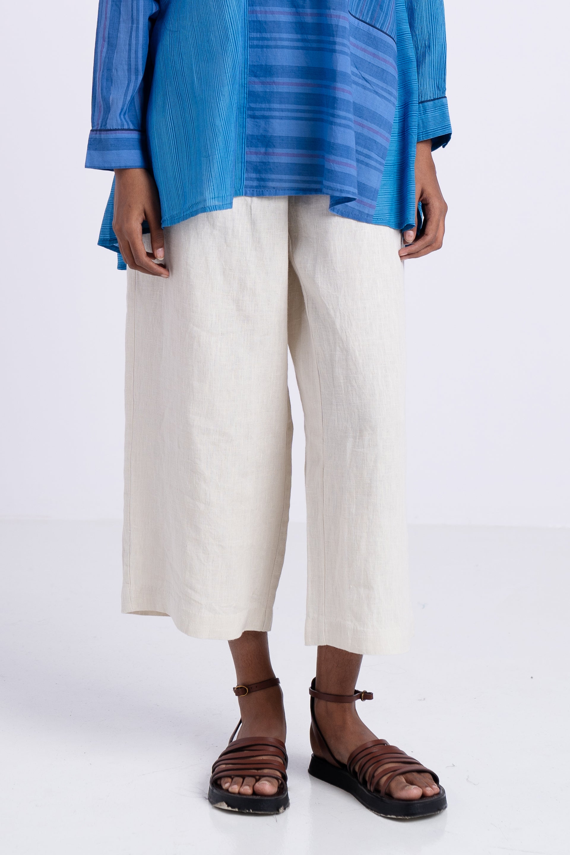 High waist wide leg trouser with elasticated waist and pockets on the sides. Constructed in solid linen fabric.