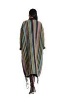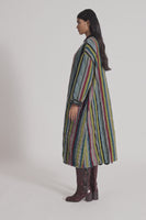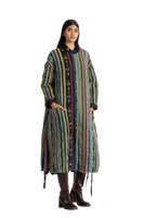 Reversible round neck button down jacket in multicolor jacquard stripe and multicolor all over floral print in 100% merino wool.