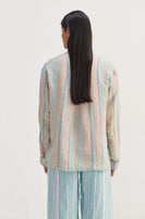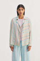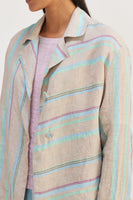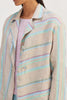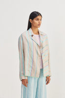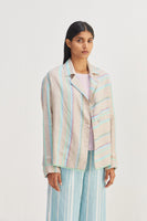 Short front open striper jacket with contrast border detailing.