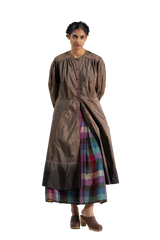 Ombre-dyed dress with hand block print detailing and tiered stripe lining.