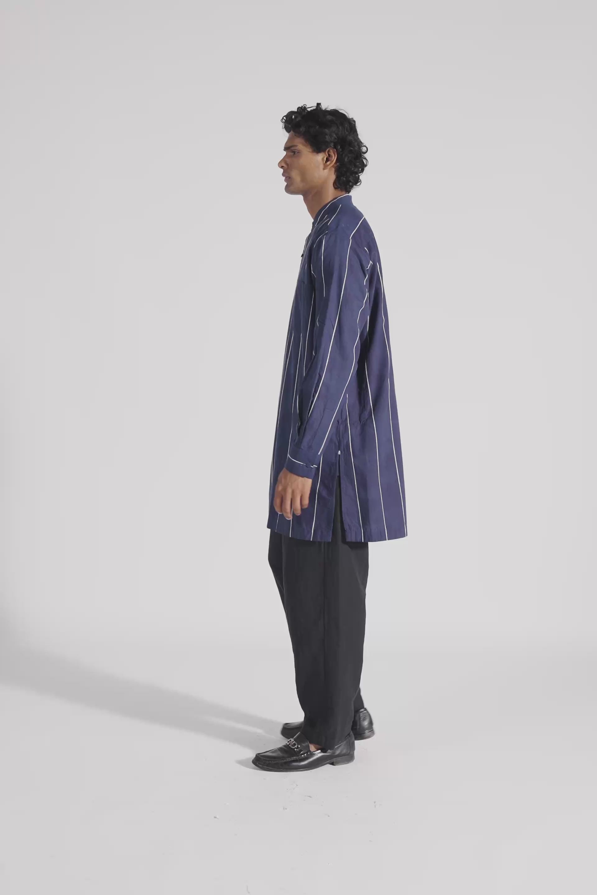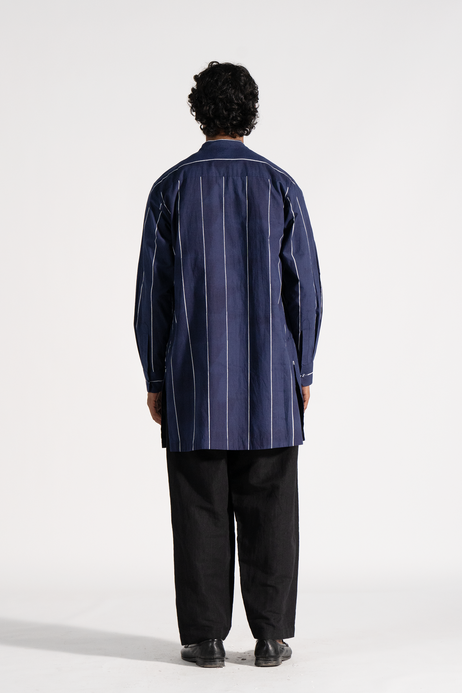 Straight fit front open all over handblock printed kurta in handwoven khadi
