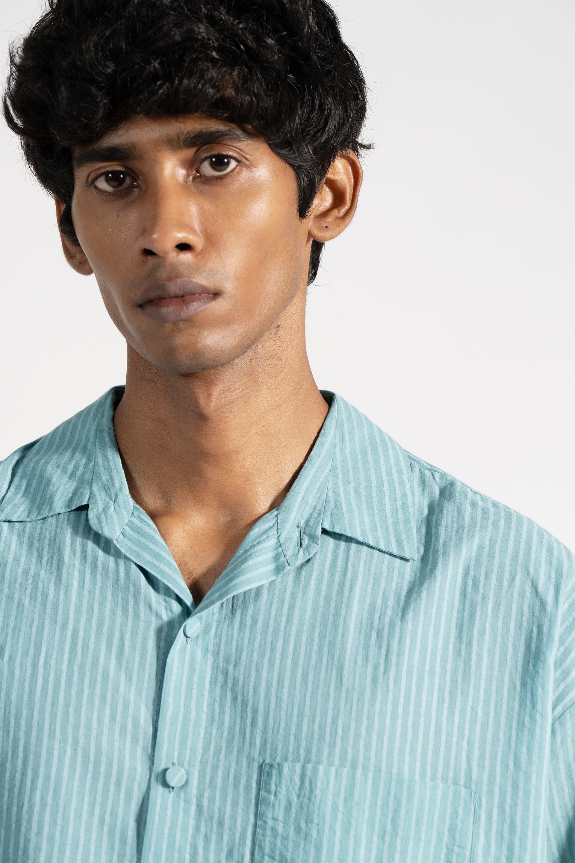 All-over handblock printed shirt in khadi.