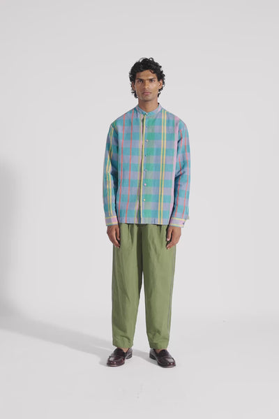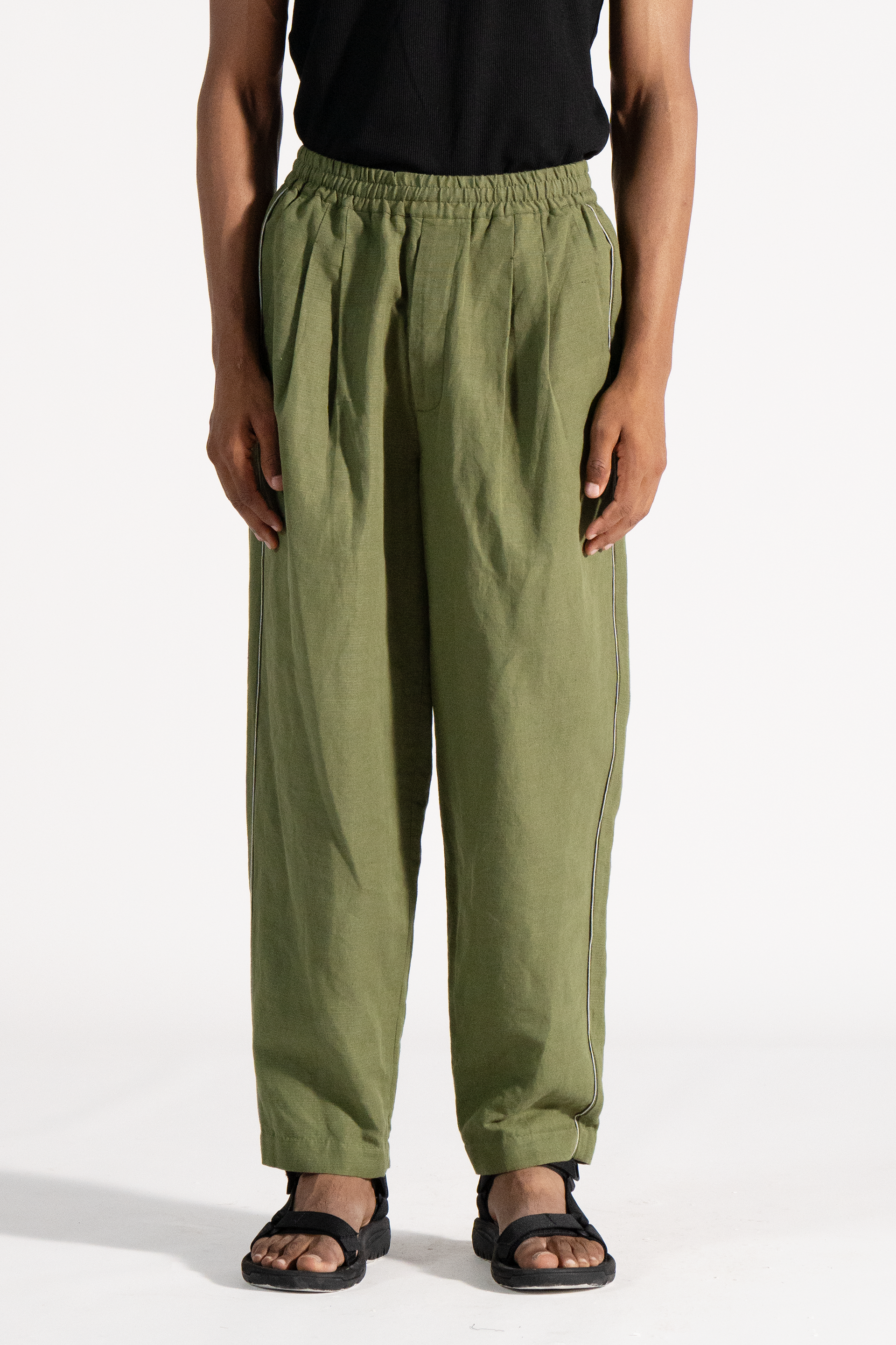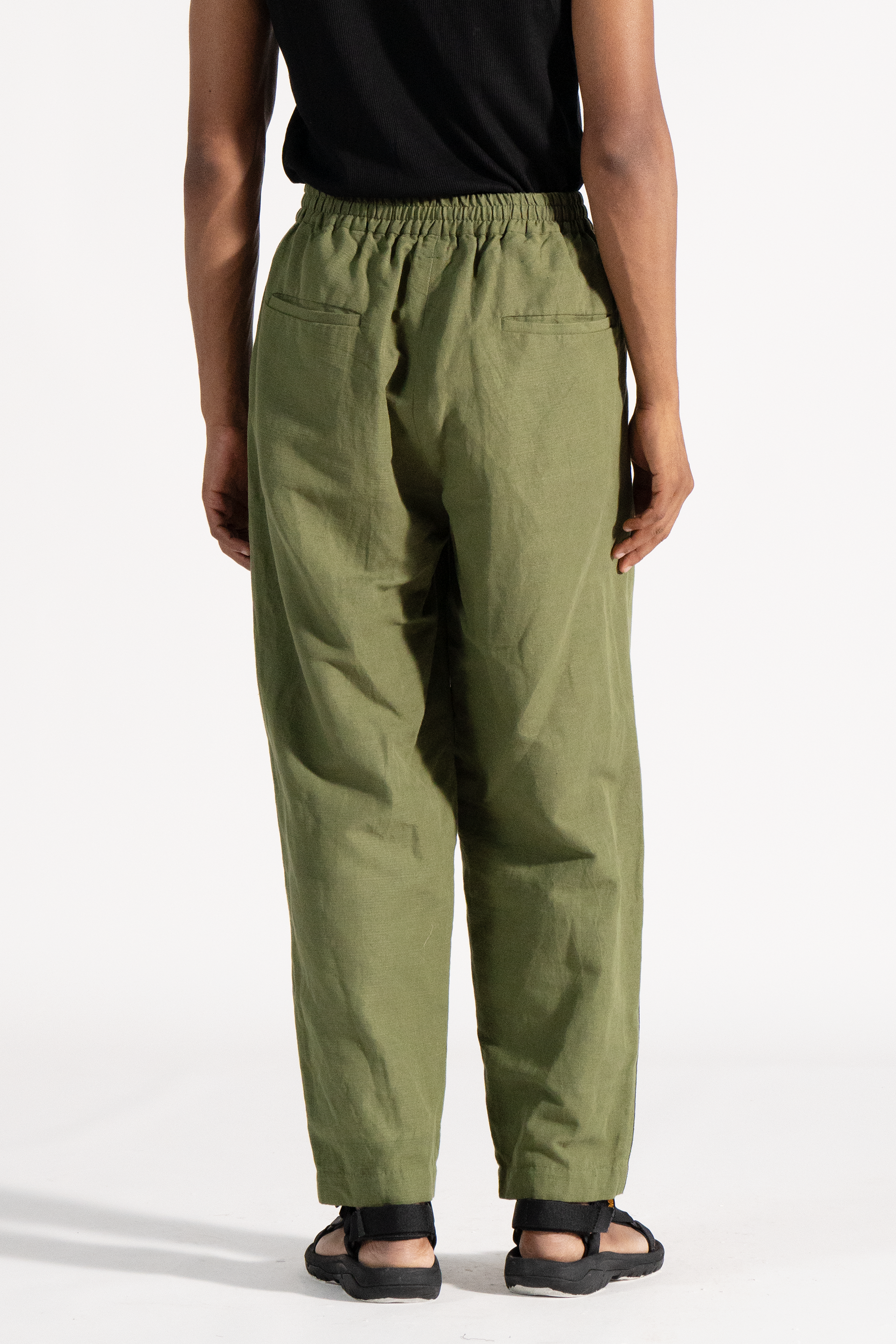Baggy fit front pleat trouser with side pockets. Constructed in cotton linen fabric.