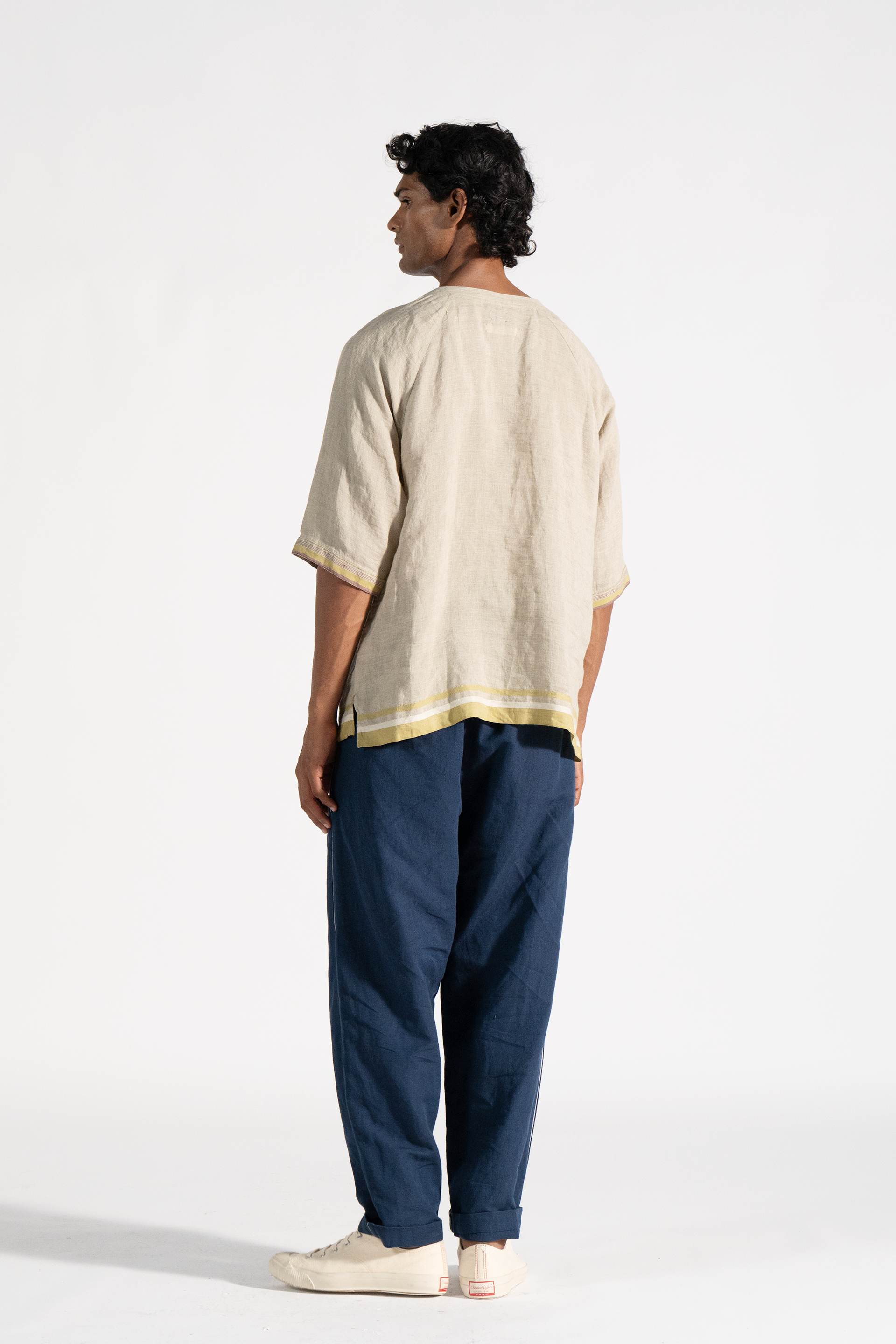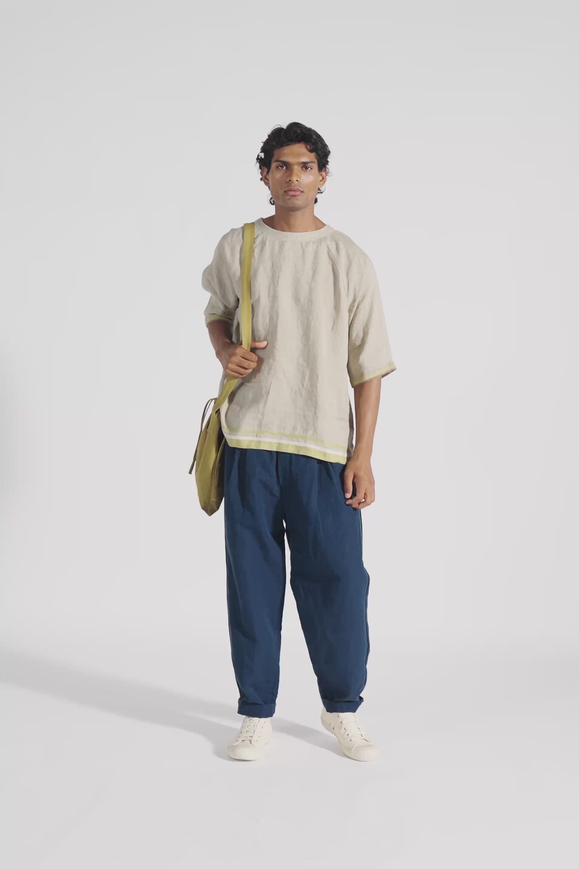 Crew neck relaxed fit with raglan sleeve linen t-shirt in dual tone.