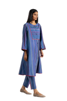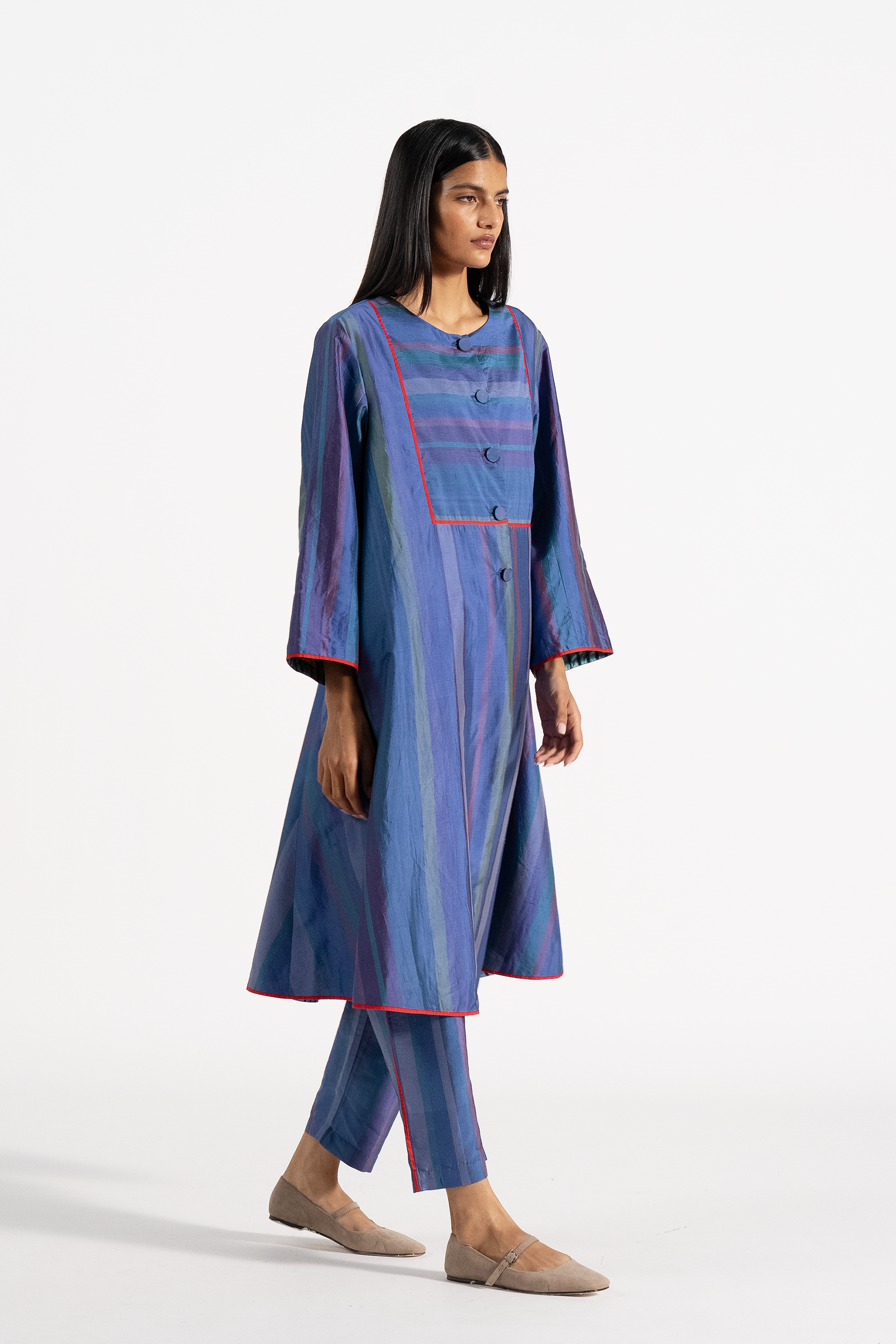 Relaxed Fit Midi Length Kurta In Tonal Self Striper 100 % Silk. Comes With A Tonal Self Striper 100 % Silk Trouser.