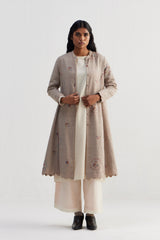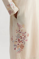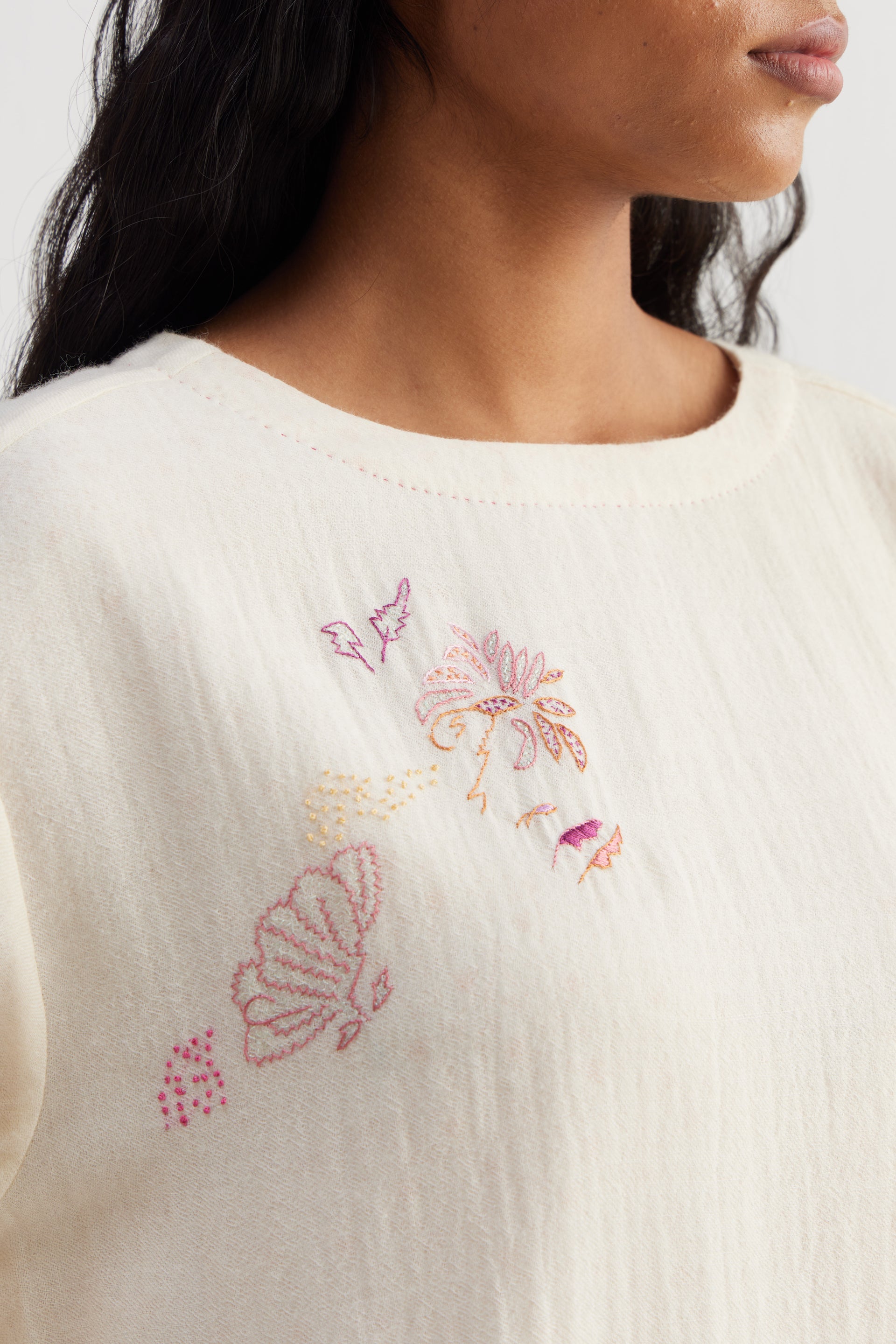 Sozni embroidery—is a 500 year old needle craft embroidery passed down through generations. Each piece reimagines traditional motifs with delicate chain stitches in silk and wool threads. Originally sozni was done in Kashmir on pashmina wool shawls in silk threads. We’ve used the dexterity and elegance of sozni and contemporized it in patterns, colors, and stitch variations.