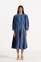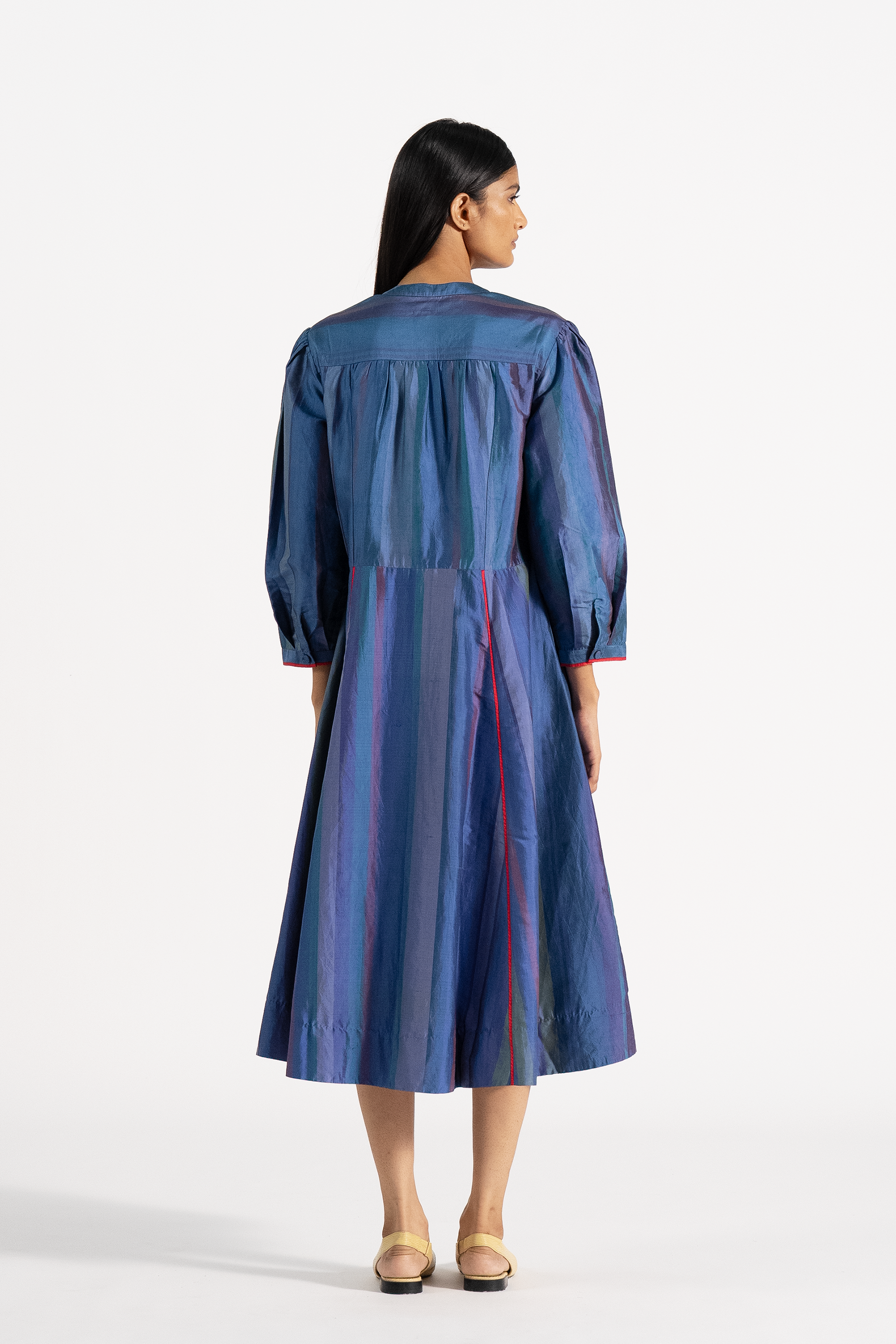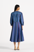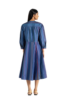Relaxed Fit Midi Button Down Dress In Tonal Self Striper 100 % Silk