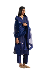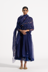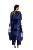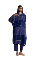 Oversized Round Neck Patchwork Kaftan Kurta Dressin Jacquard Butti Silk Organza. Comes With A Separate Cotton Silk Lining And Paprika Pants In Silk.