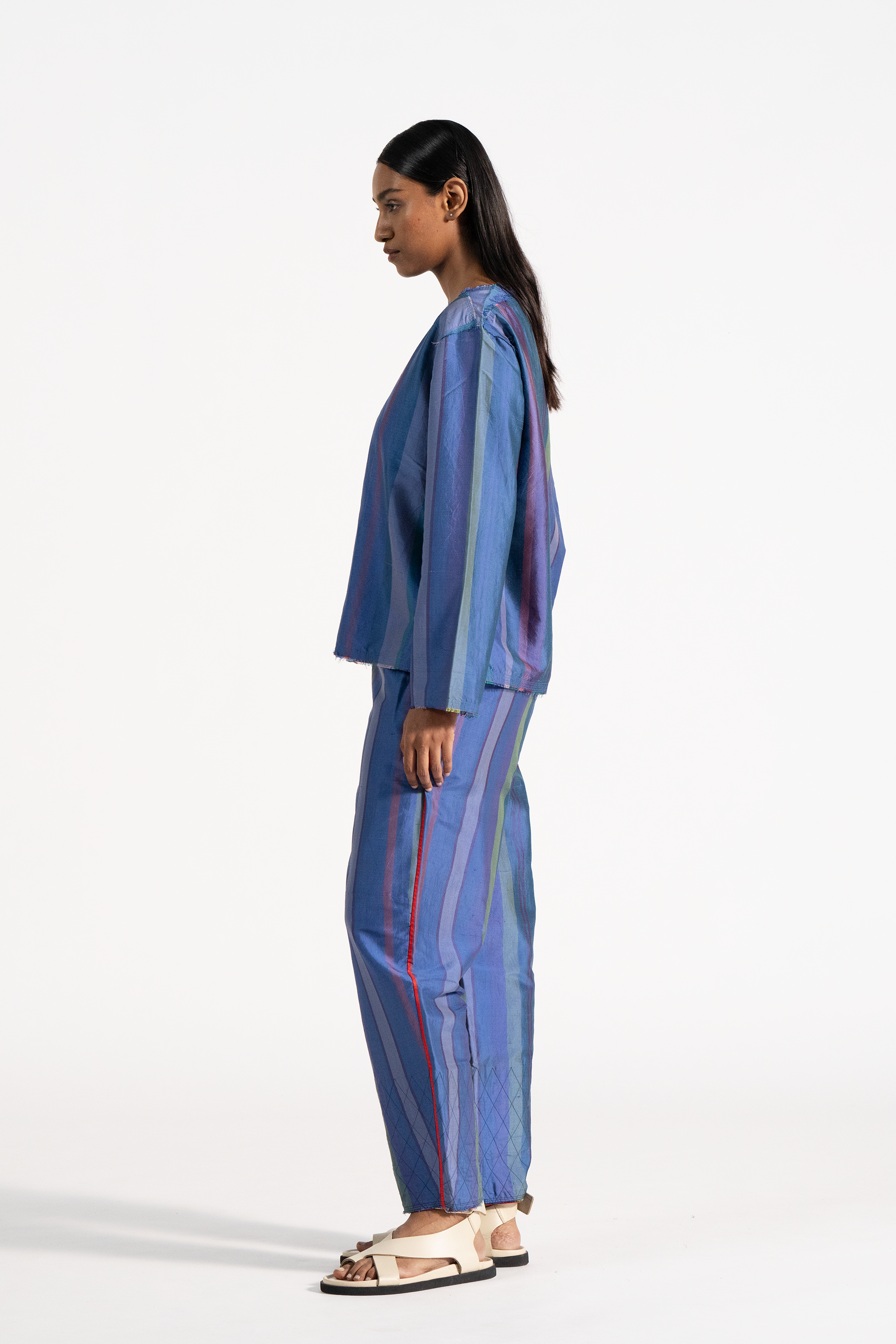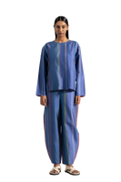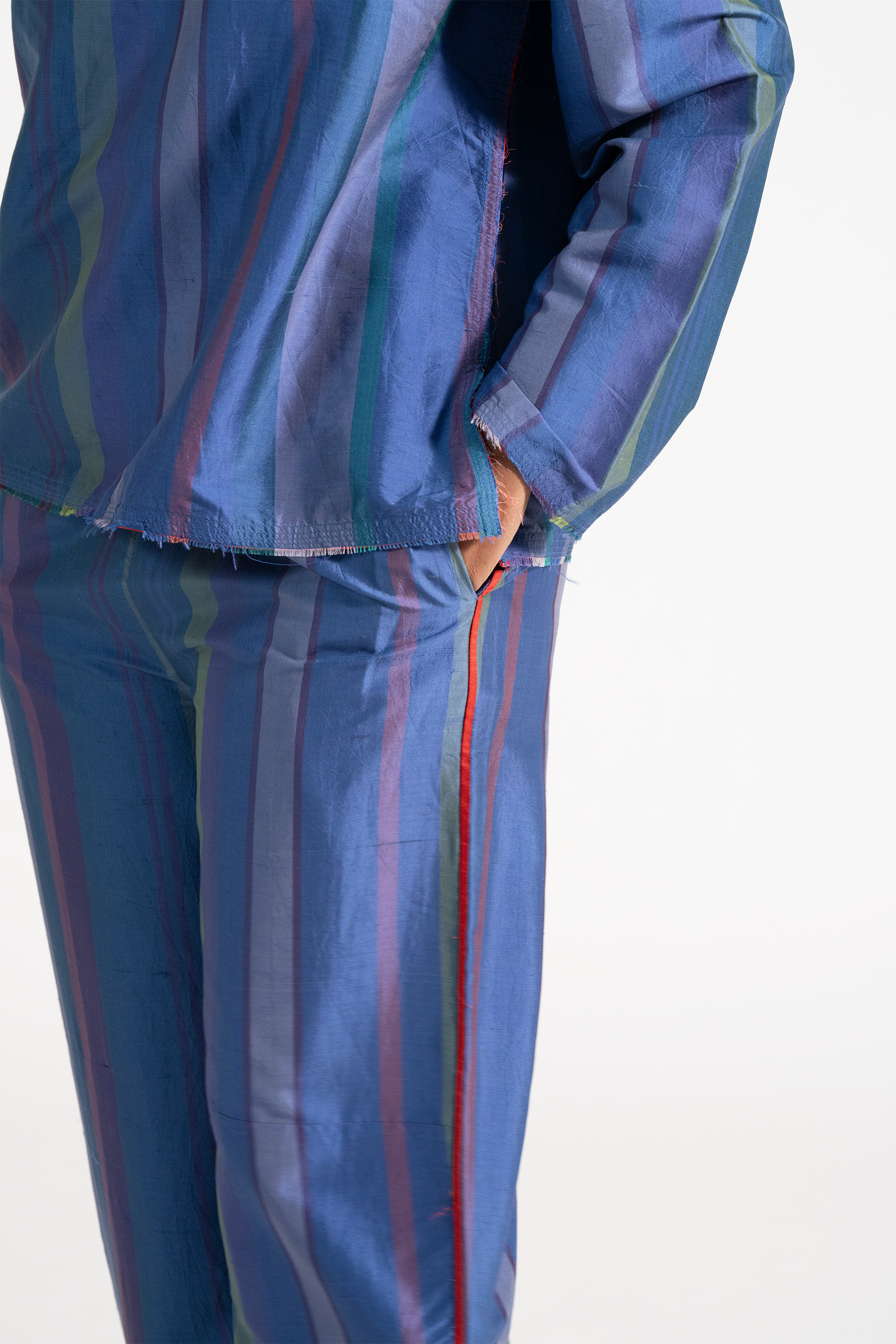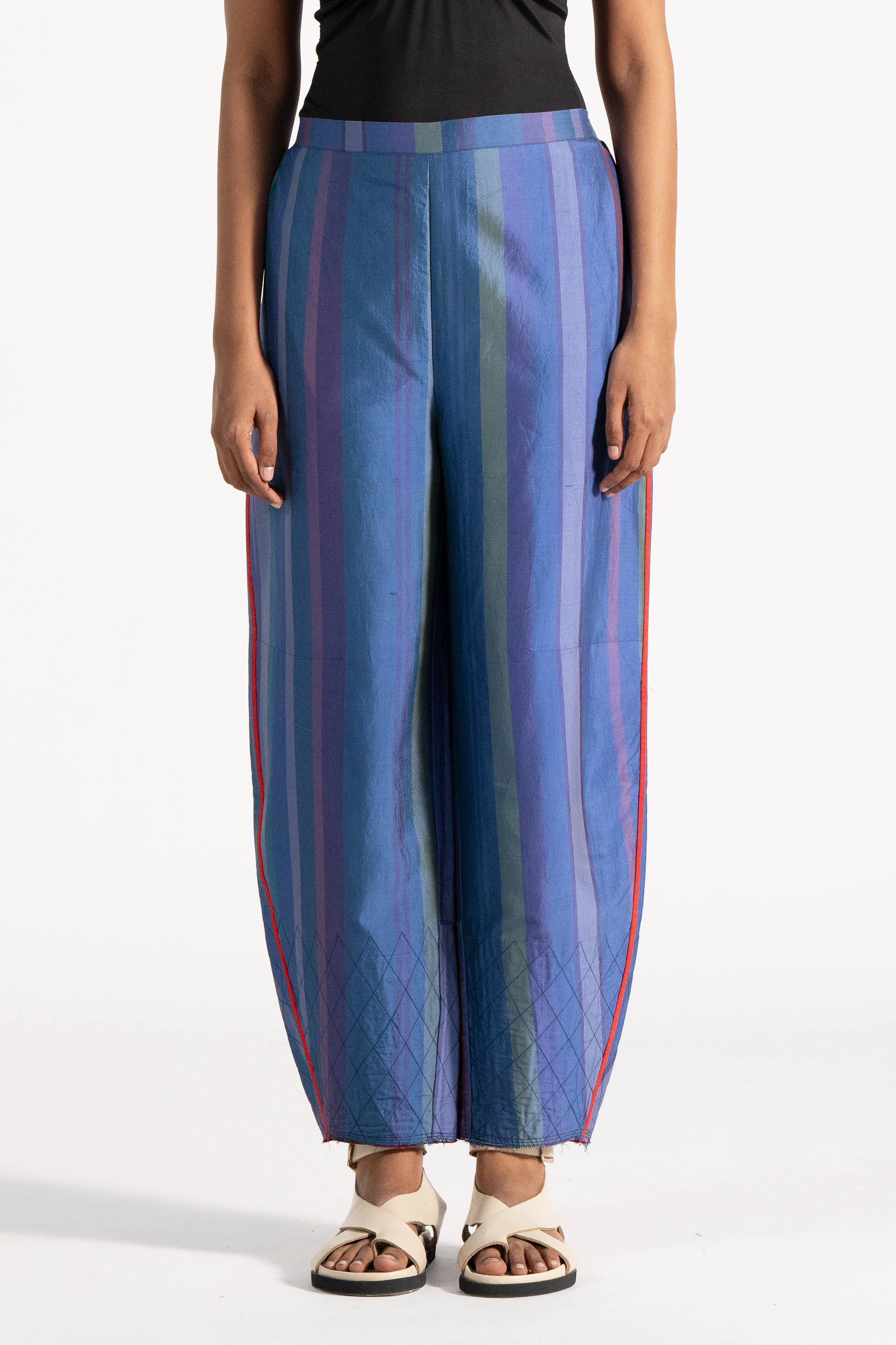 Baggy High Waist Trousers With Quilted Hem Detail In 100% Silk