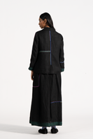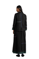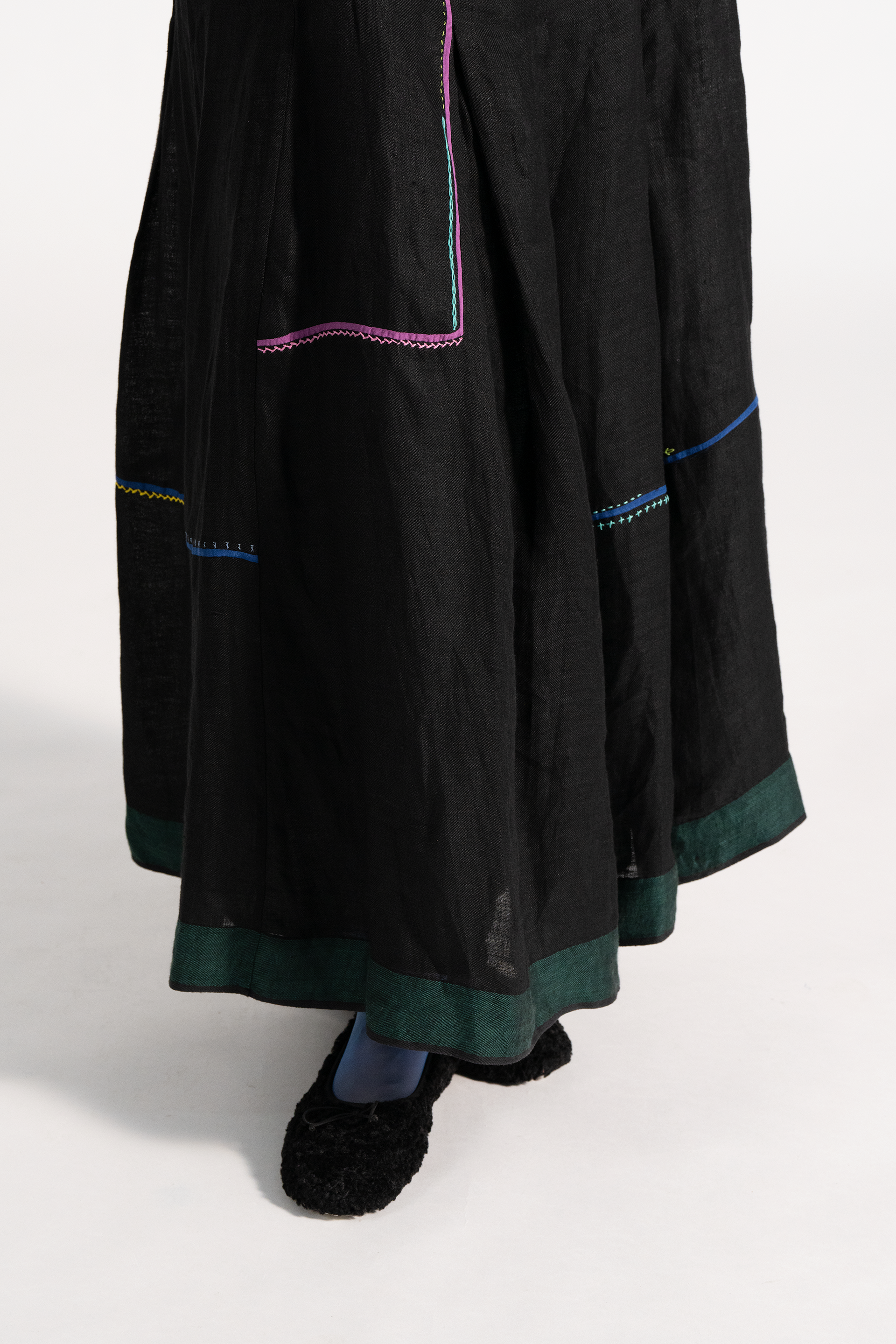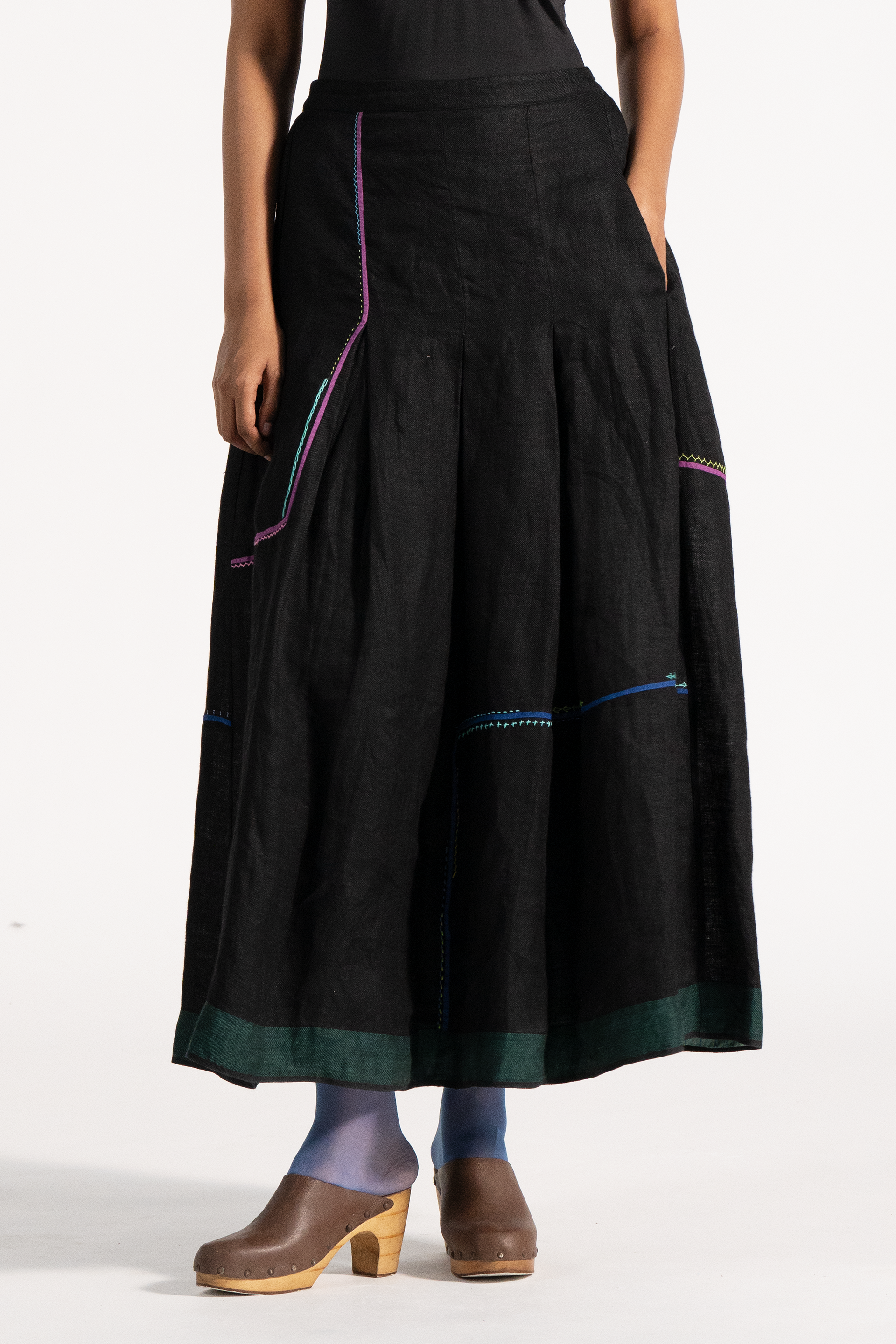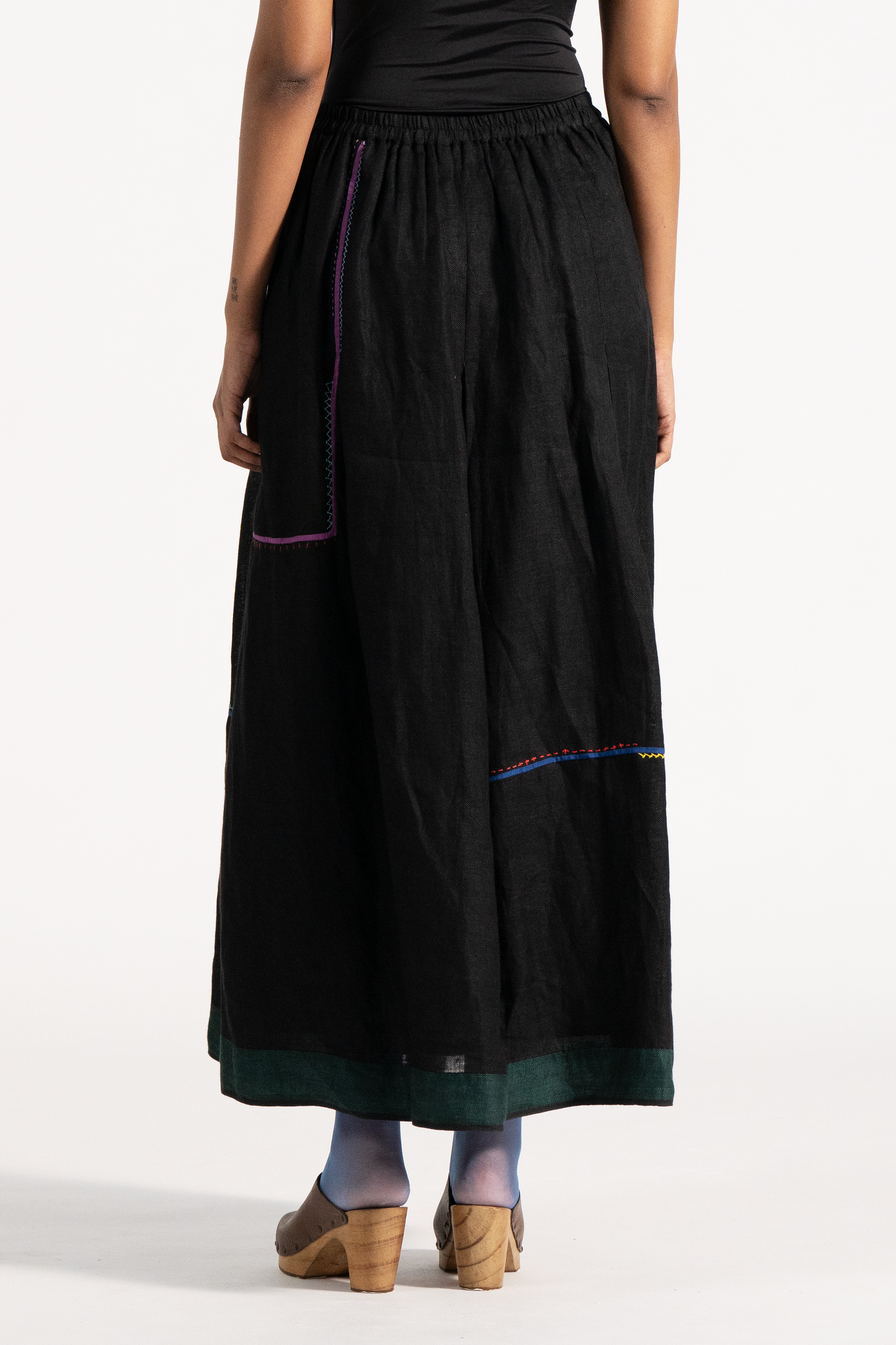 High Waisted Maxi Length Skirt Multicolor Hand Stitch Detail 100% Linen.