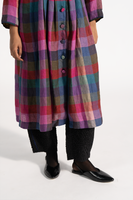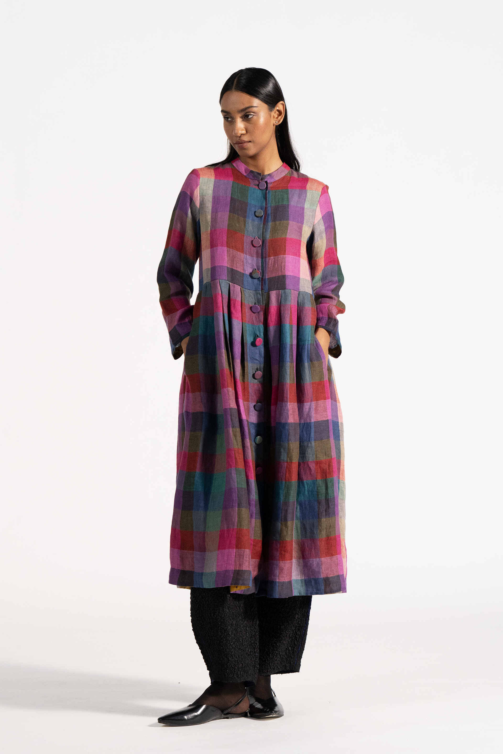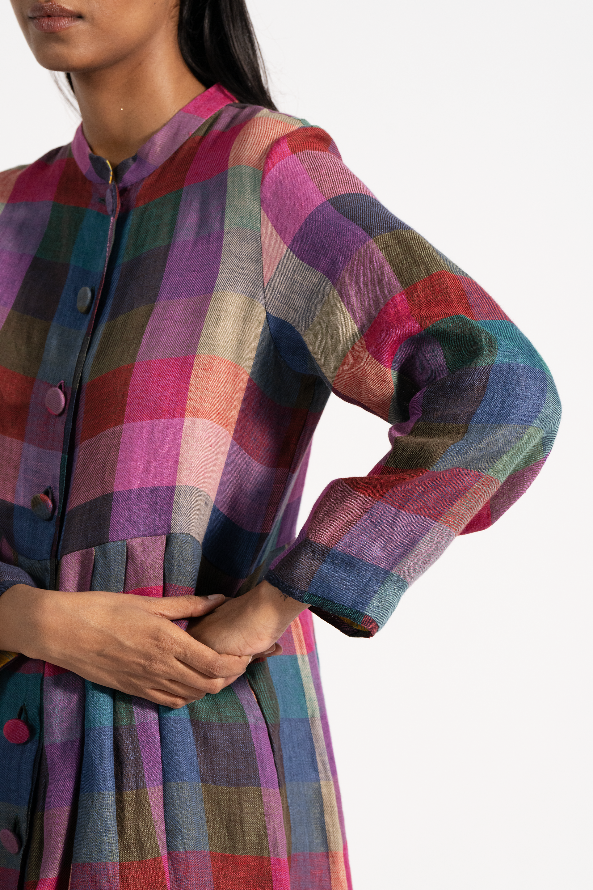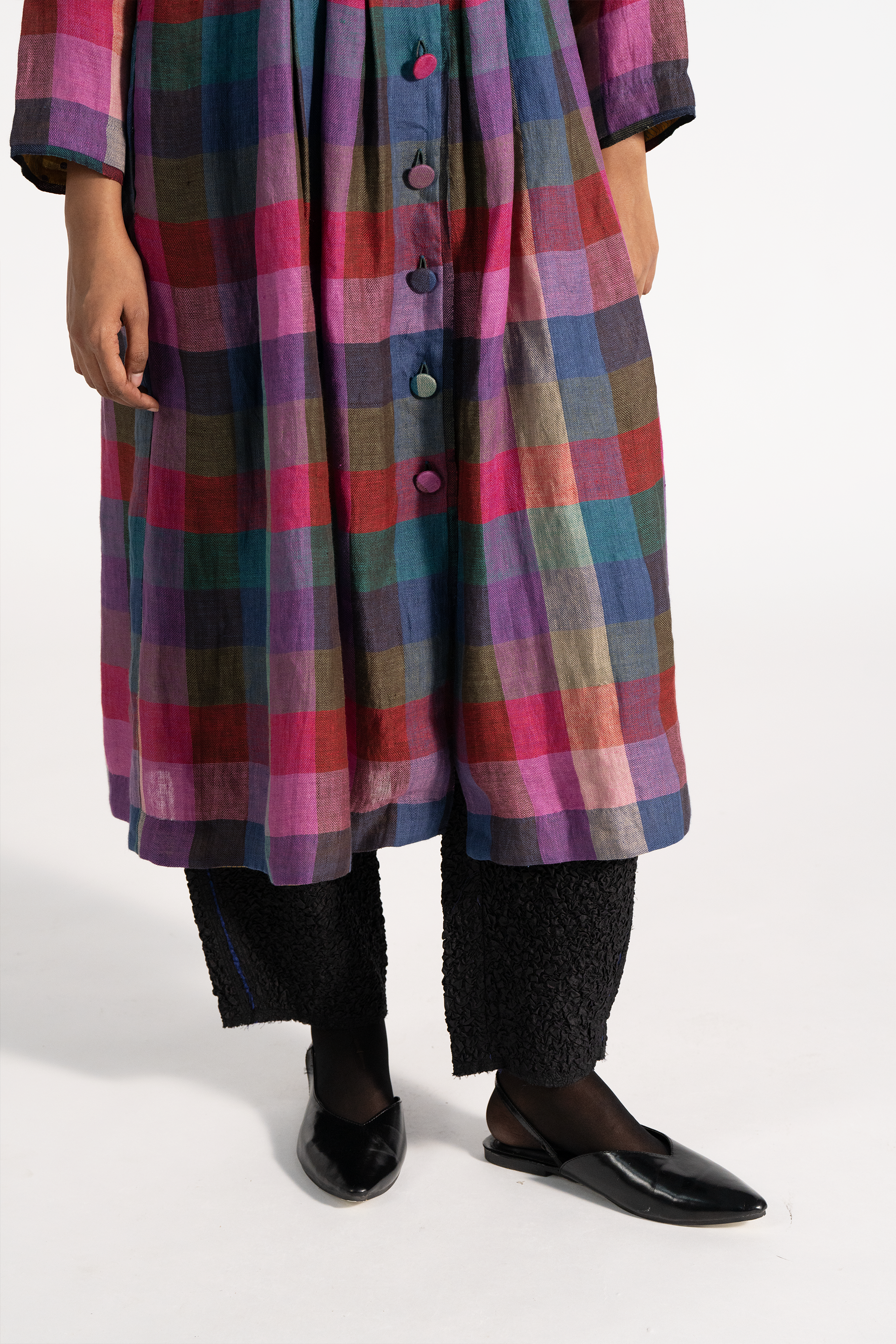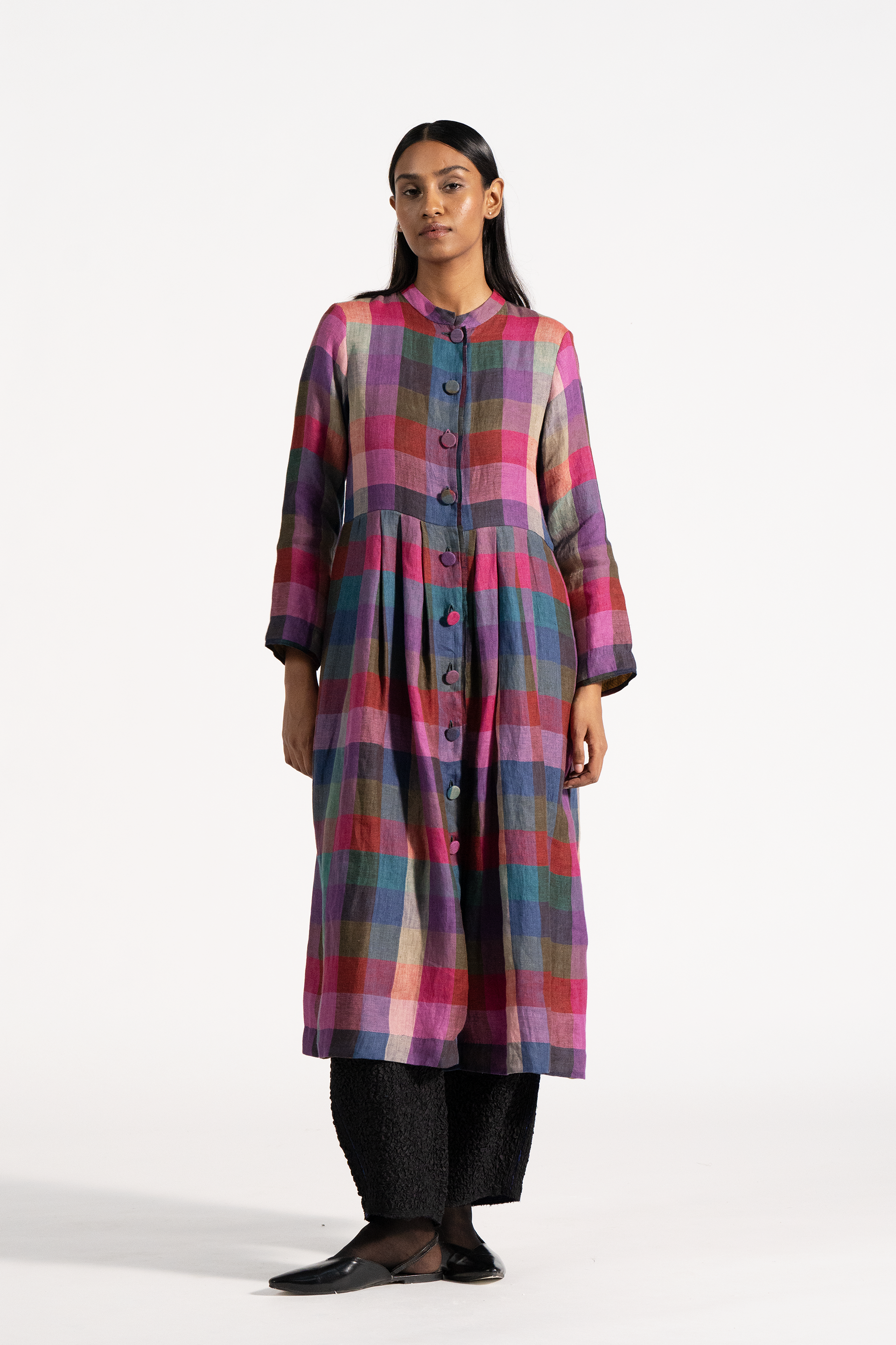 Relaxed Fit Full Button Down Dress With Gathers In 100% Linen Twill.