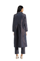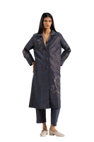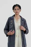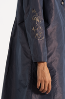 Notch Collar Long Straight Jacket With Placement Hand Embroidery On It In 100% Silk Taffeta Lined With Silk Lining