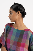 Boat Neck One Size Top With Shoulder Drop Detail In 100% Linen Twill.