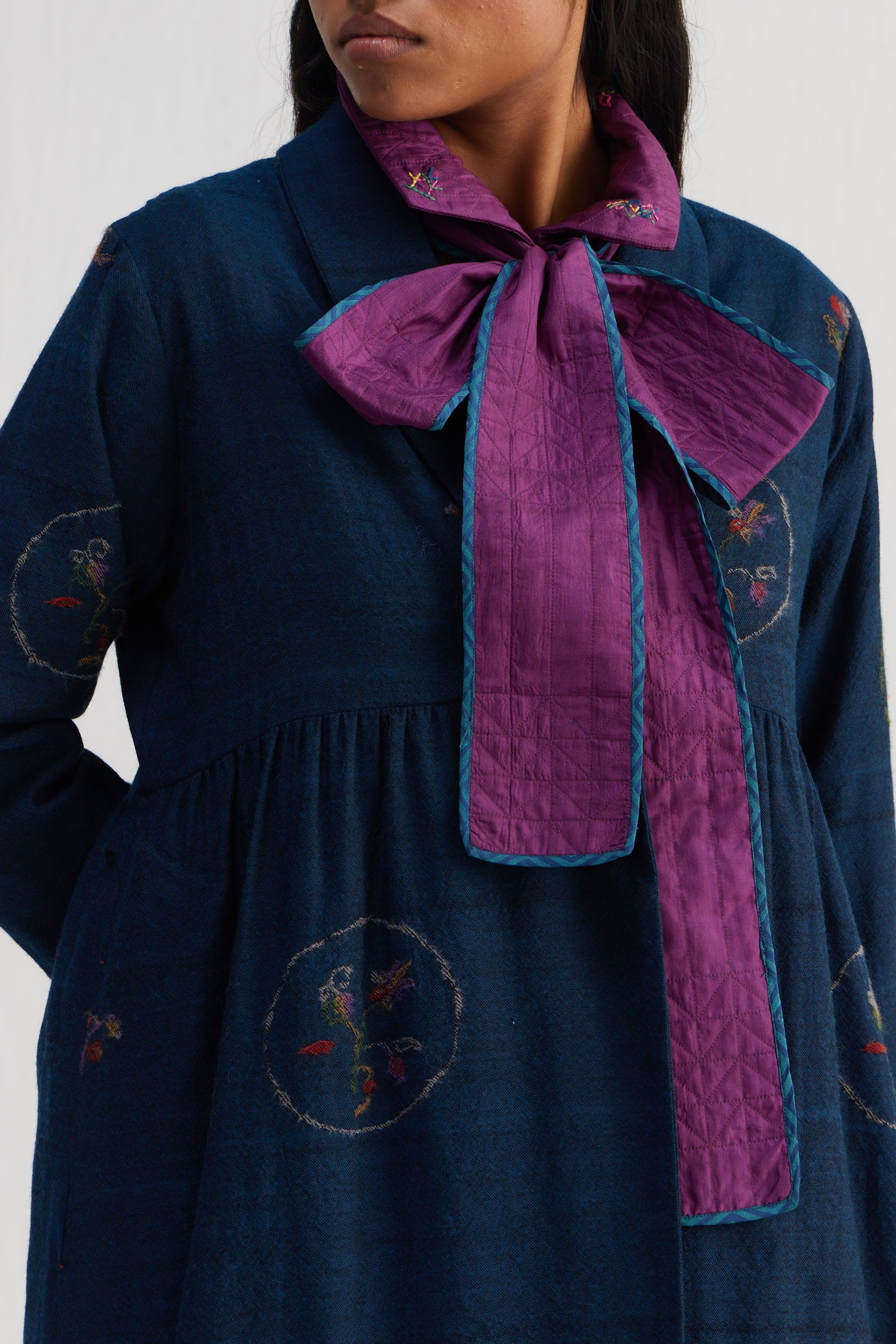 Quilted belt, constructed in solid 100% silk fabric, finished with contrast chevron hand block print piping detail.