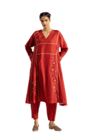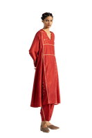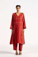 Relaxed fit kurta dress with side panels and embroidery. Comes with pleated poppy pants.