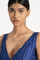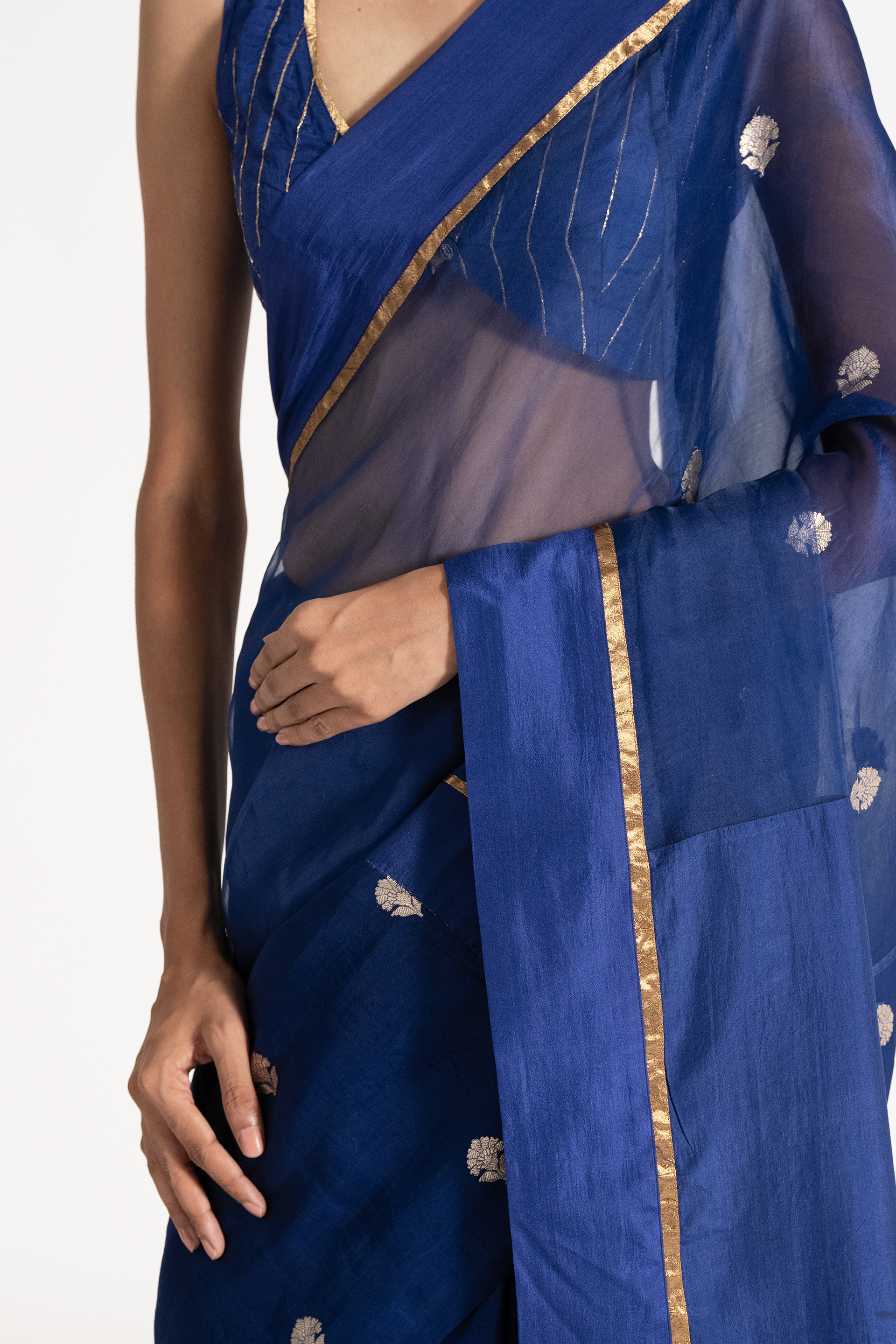 Patchwork Saree In Silk, Jacquard Butti And Organza With Piping Detail On Border.