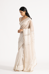 Patchwork Saree With Hand Embroidery And Gota Placement On It In Organza Tissue.