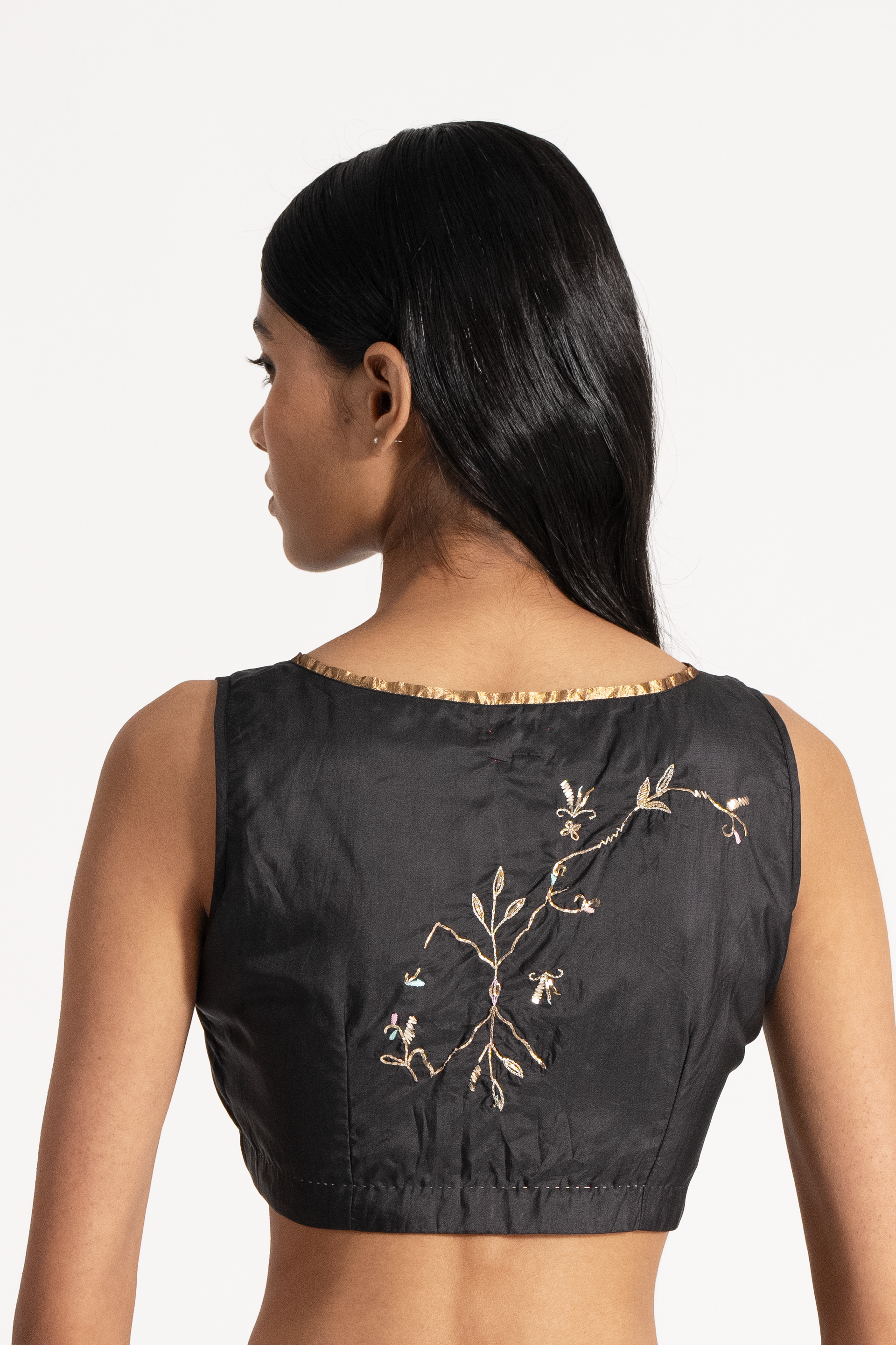 Patchwork Saree With Hand Embroidery And Gota Placement On It In Organza Tissue.