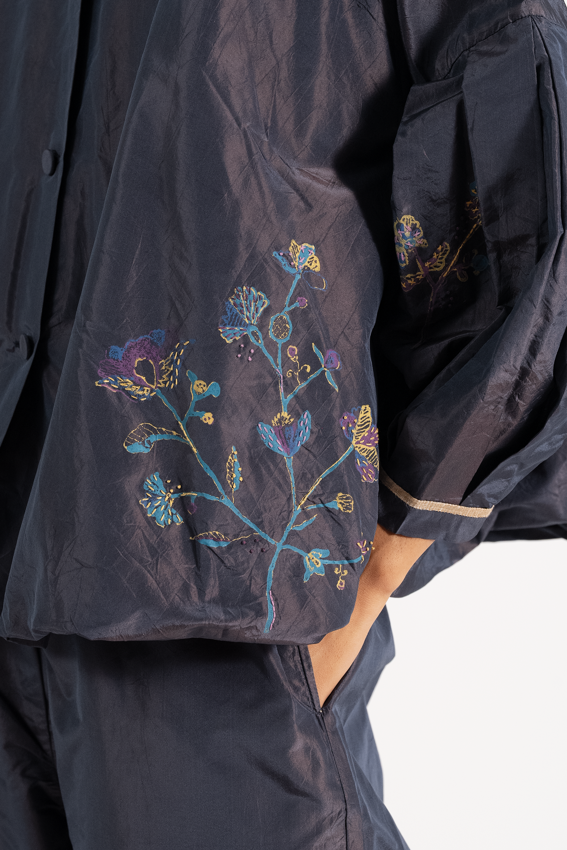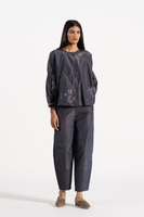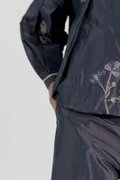 Jewel Neck With Balloon Shape Bodice Full Sleeved Top In 100% Silk Taffeta With 100% Silk Lining.