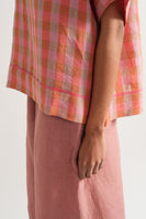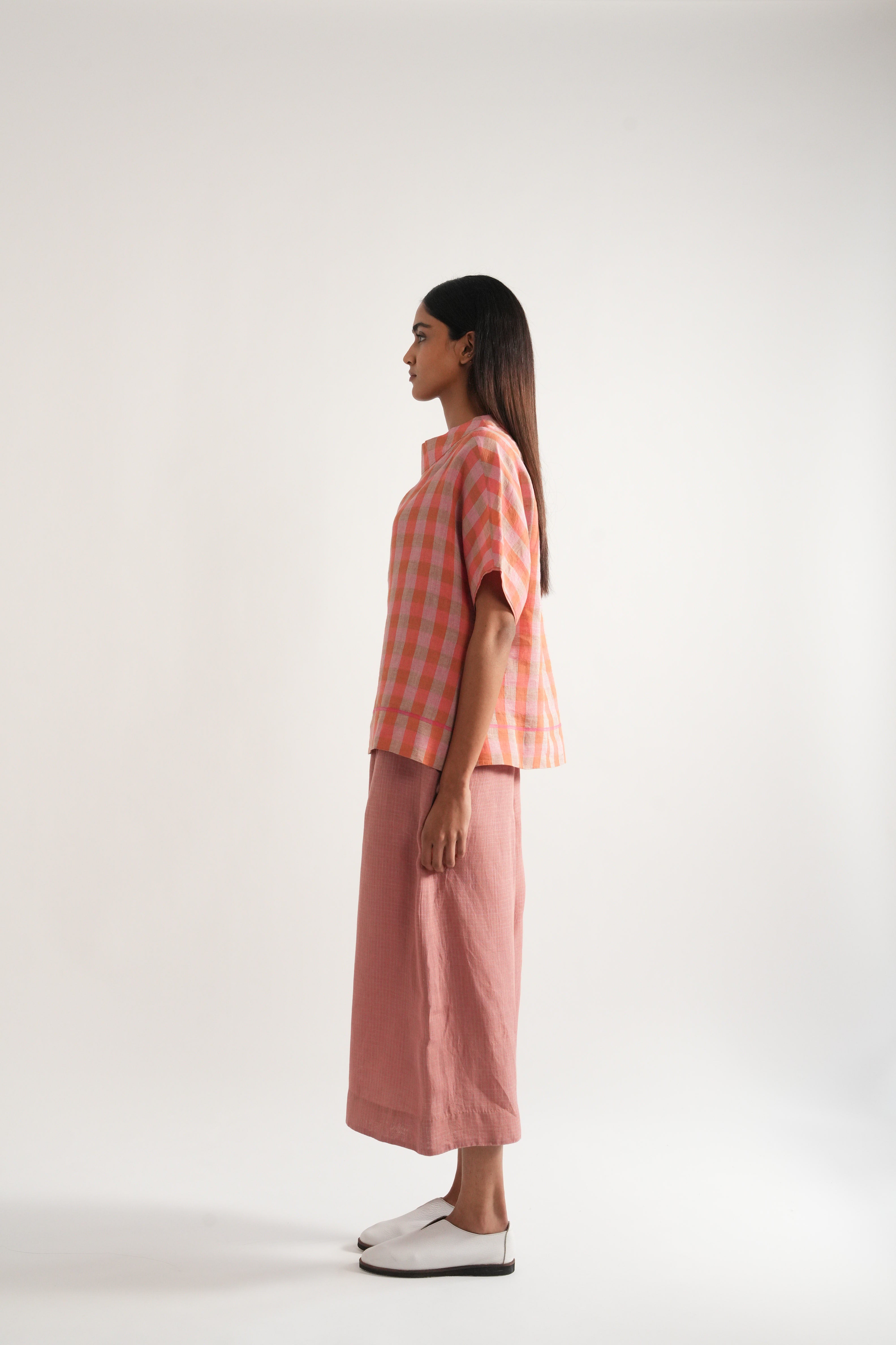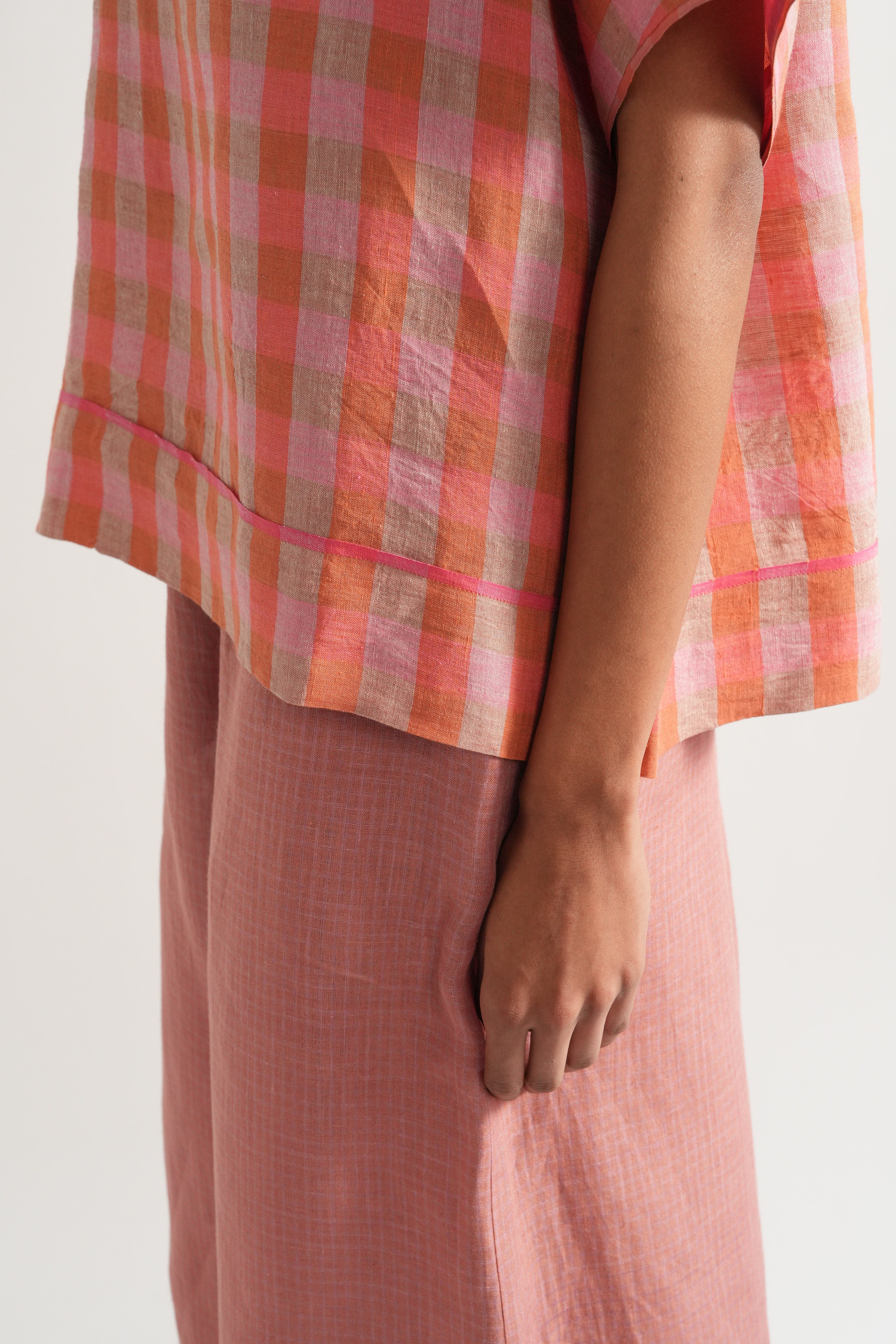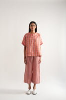 Relaxed fit short summer top in handwoven linen checks with selvage details comes with a pair of relaxed fit culottes