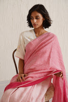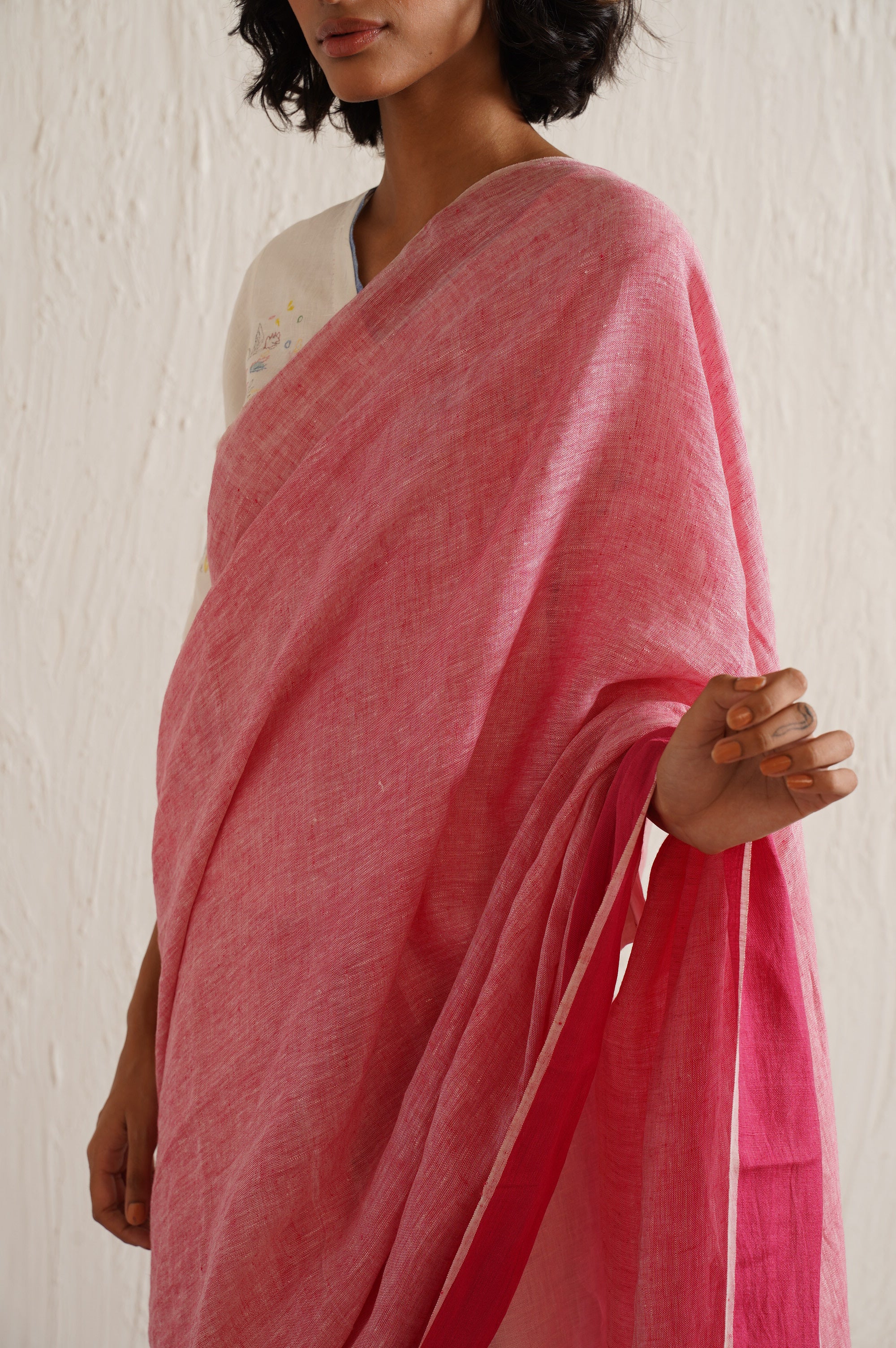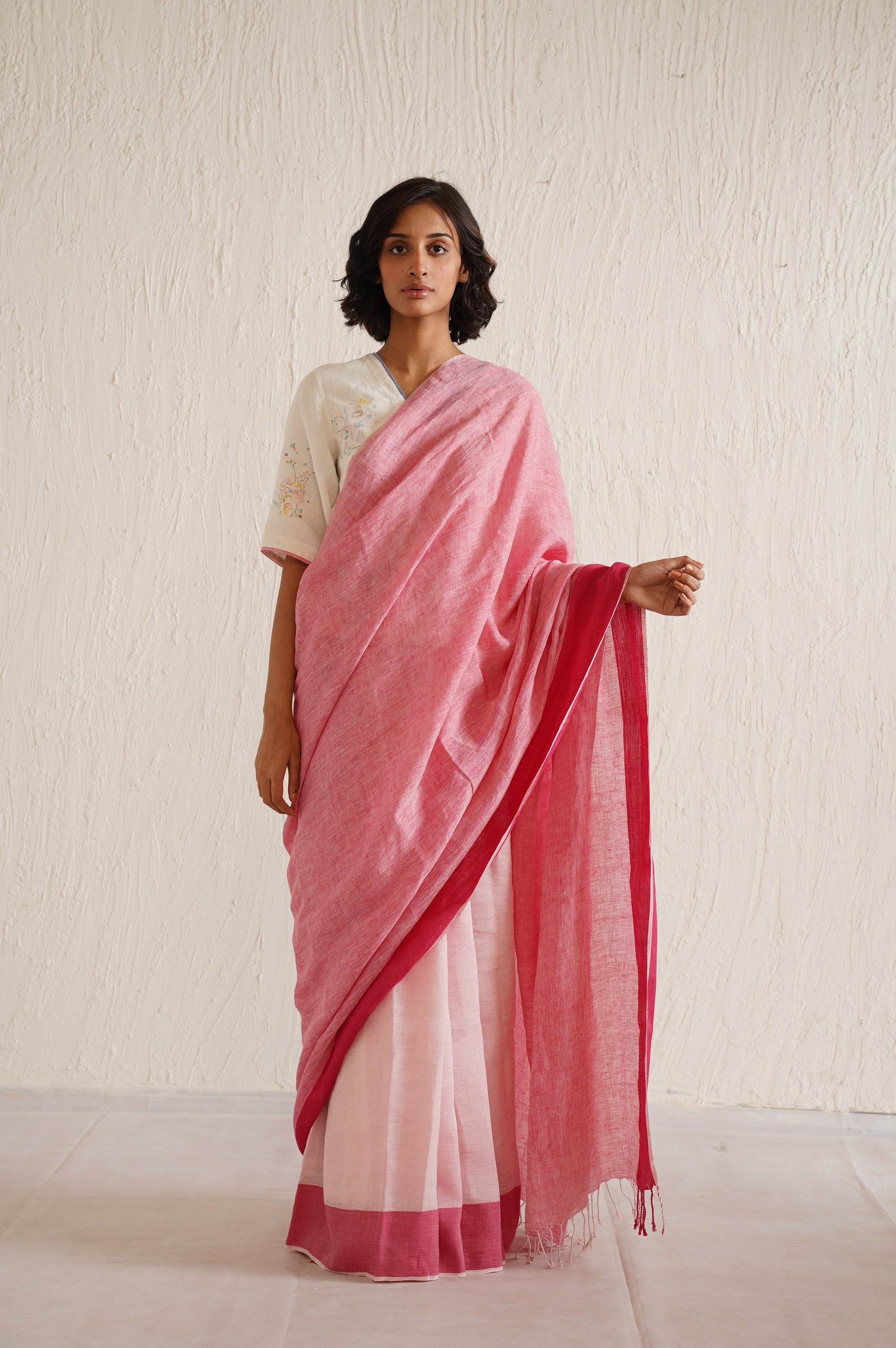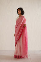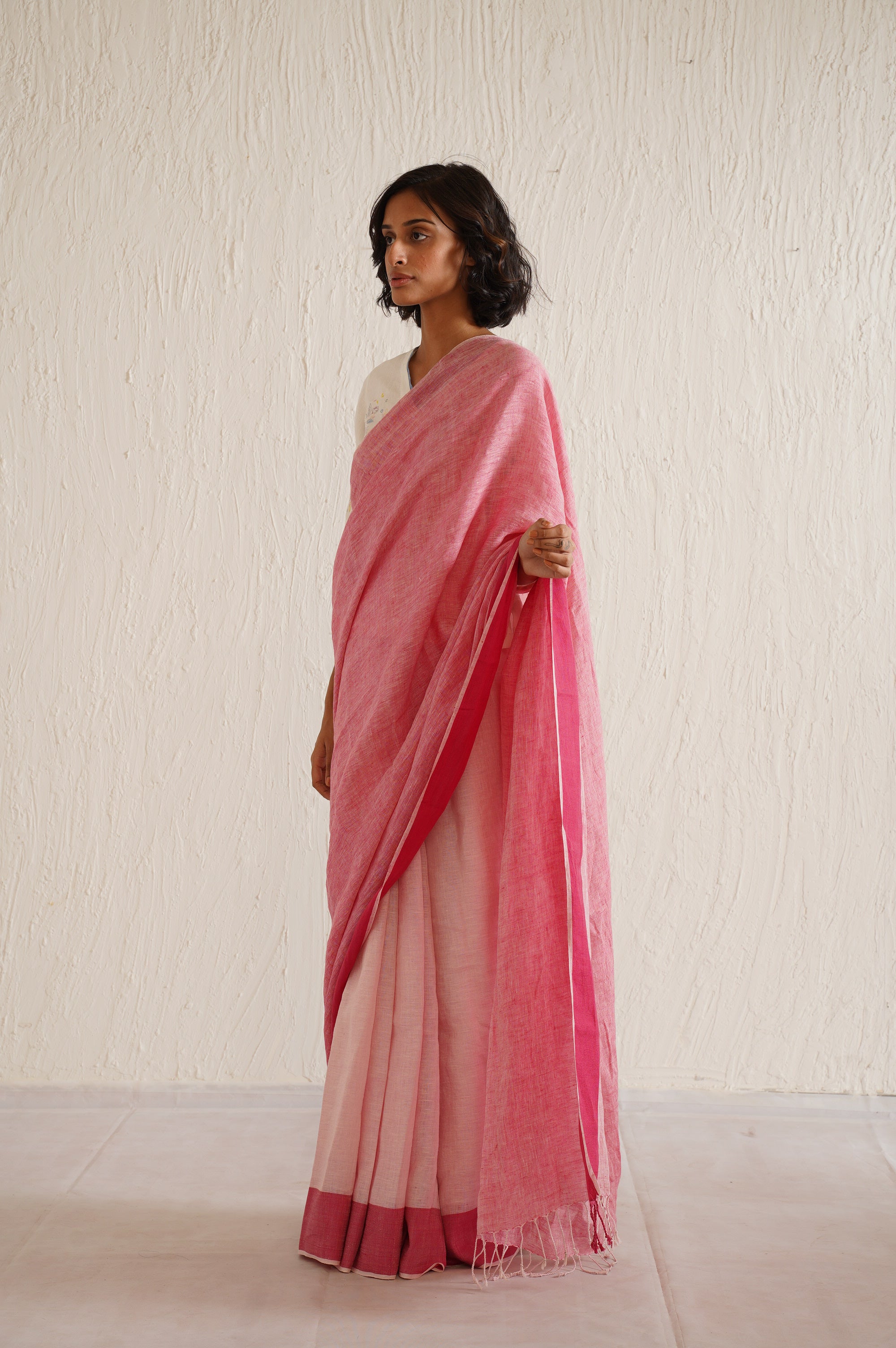 Pink handwoven plain saree with shades of pink and thick dark pink border