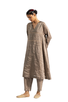 Relaxed fit kurta in linen zari with side panels and embroidery. Comes with pleated poppy pants.